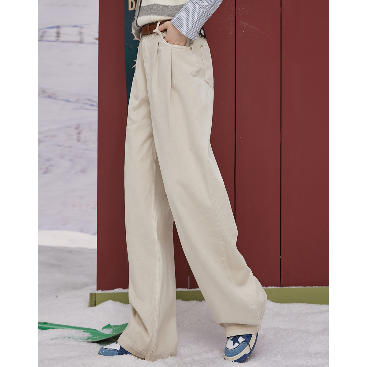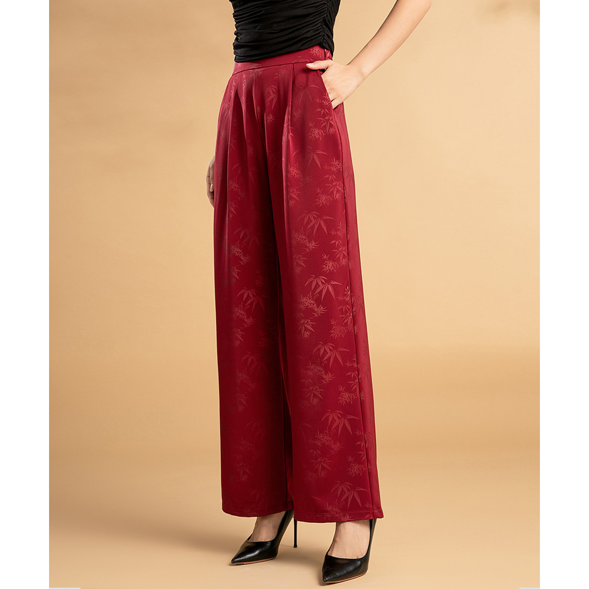 “圣诞红与国风碰撞”阔腿裤女高腰垂感慵懒休闲显瘦百搭休闲裤 713183