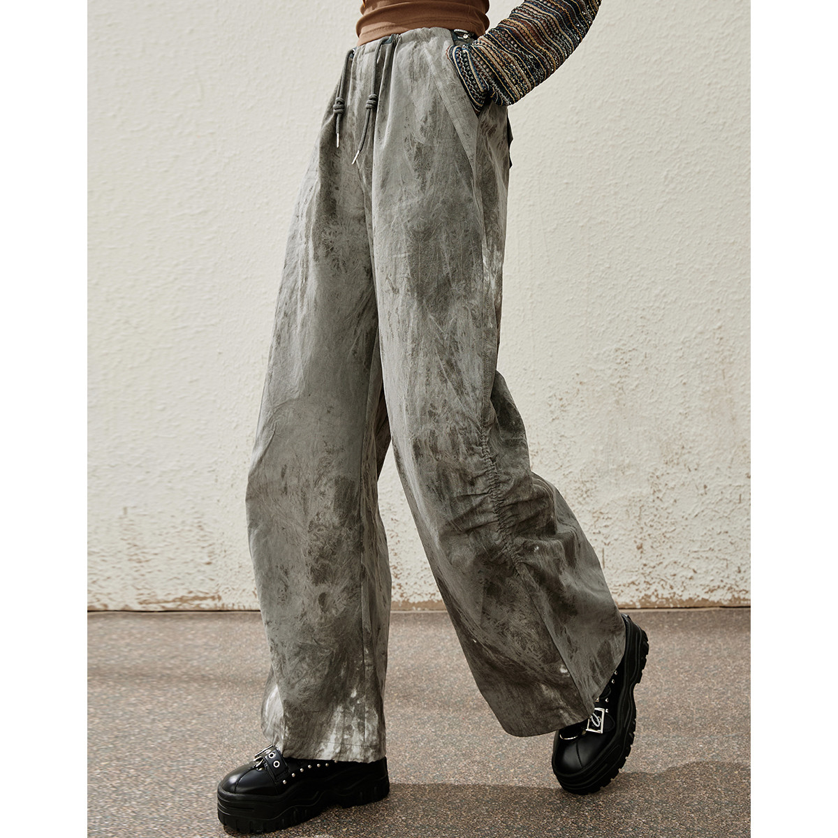 米子旗春夏季款宽松休闲长裤松紧腰口袋设计阔腿裤 096538