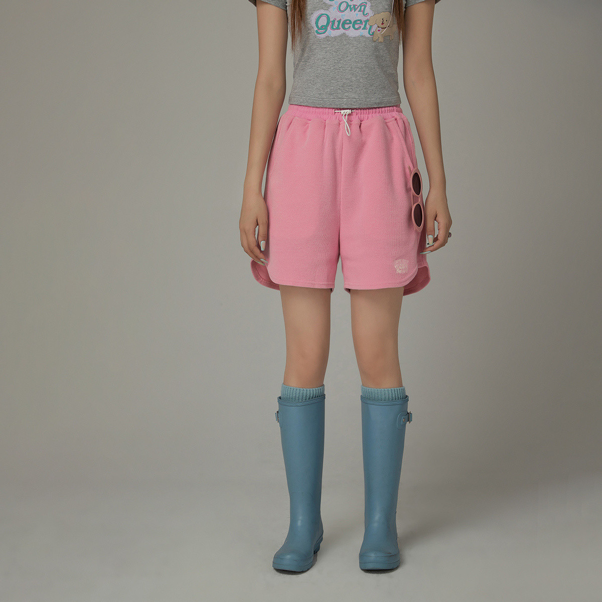 【高级斜纹肌理感短裤】小众口袋设计松紧高腰质感运动裤热裤女款 128321