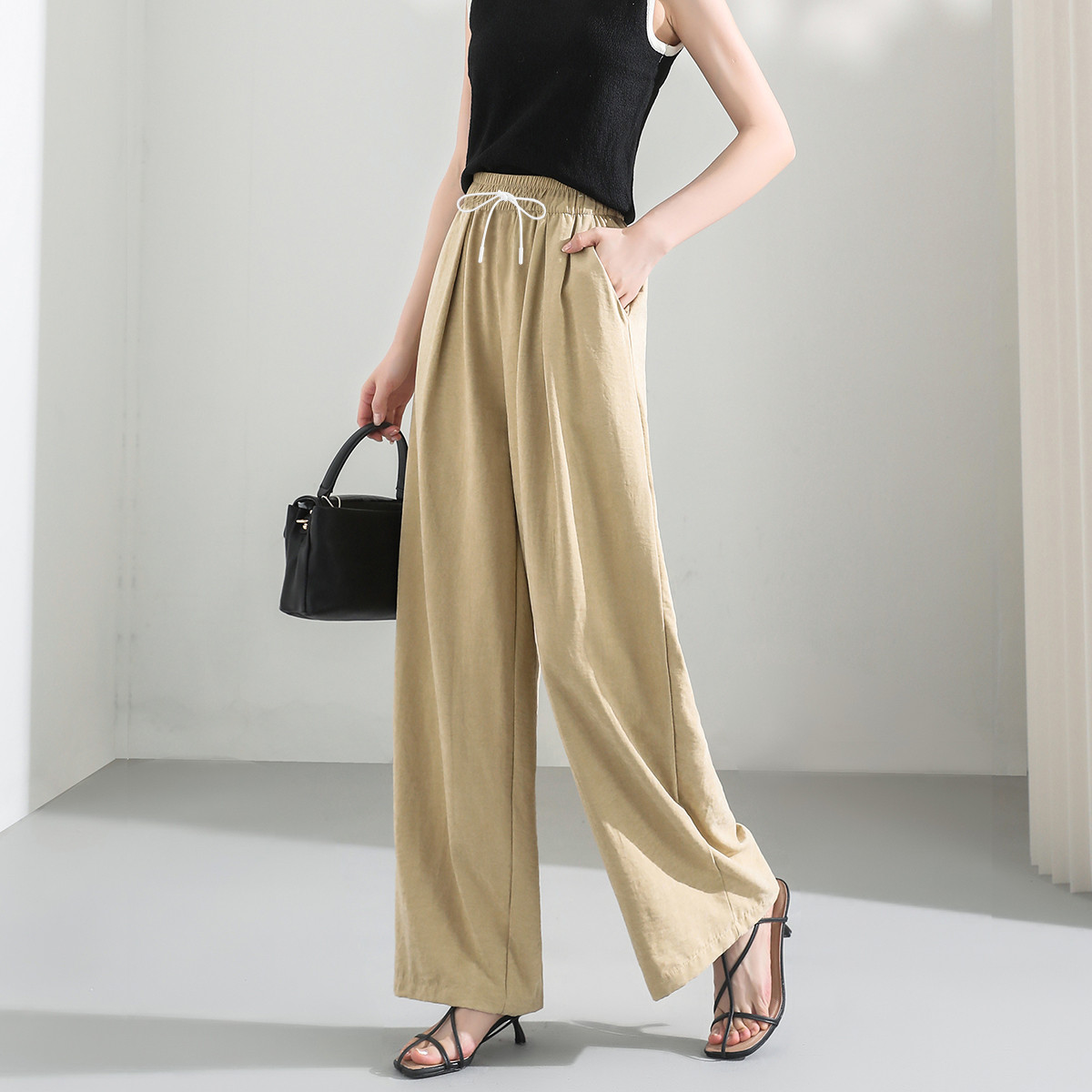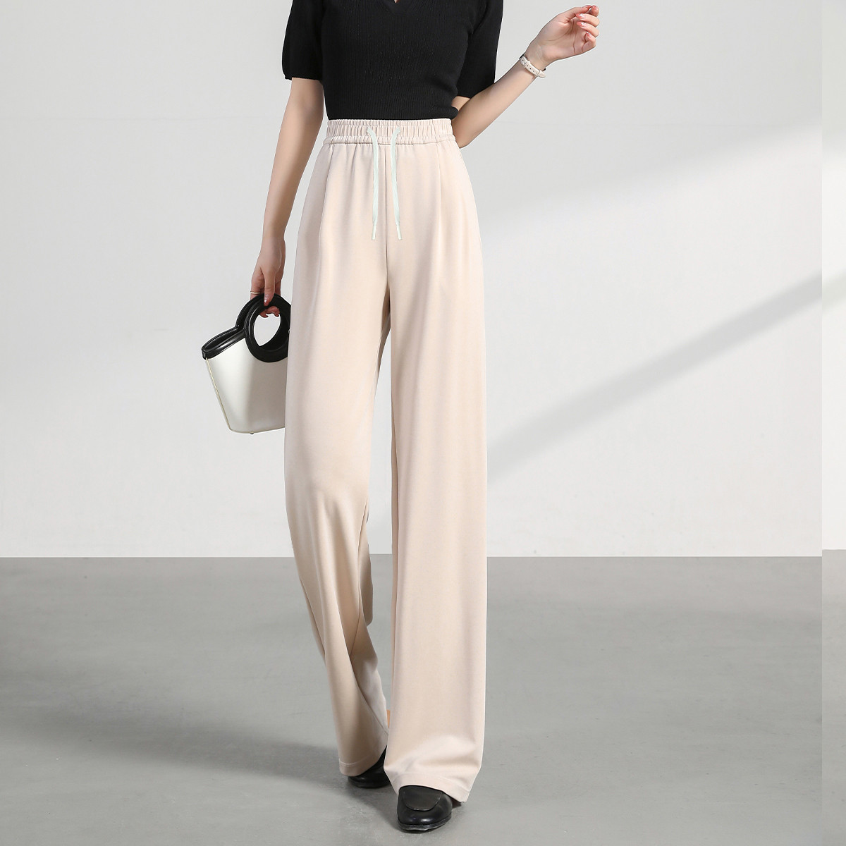 女装秋季松紧腰设计薄款垂感宽松日常百搭时尚休闲裤长裤女 948767