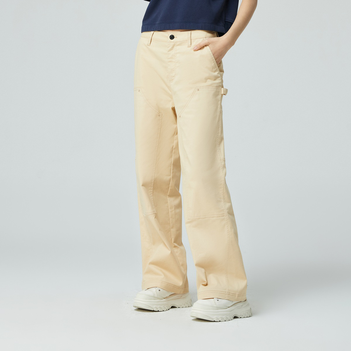 Gap女装春夏纯色直筒卡其布工装裤简约百搭休闲裤872552 615130