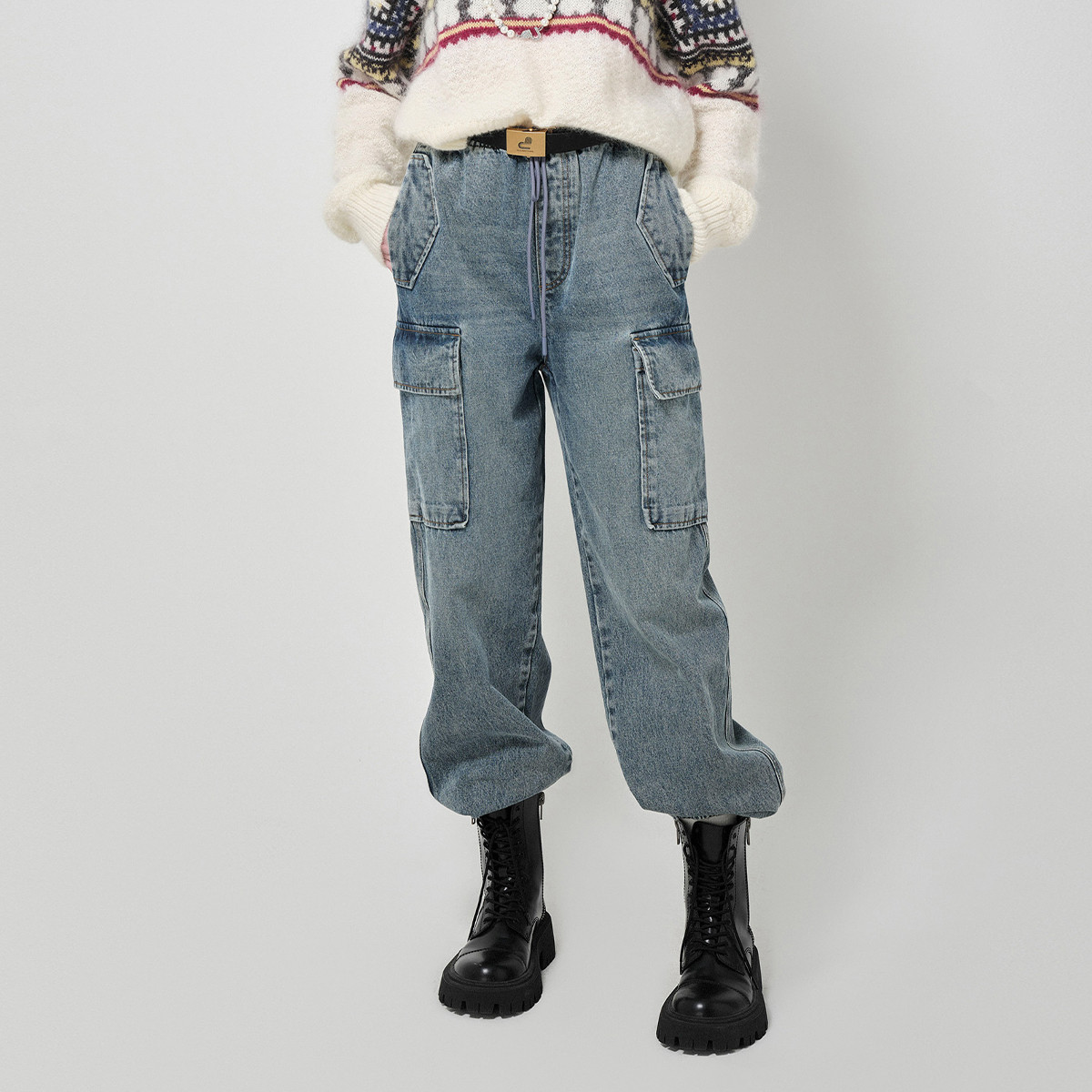 地素牛仔卫衣裤秋冬专柜工装风牛仔休闲裤女 381579