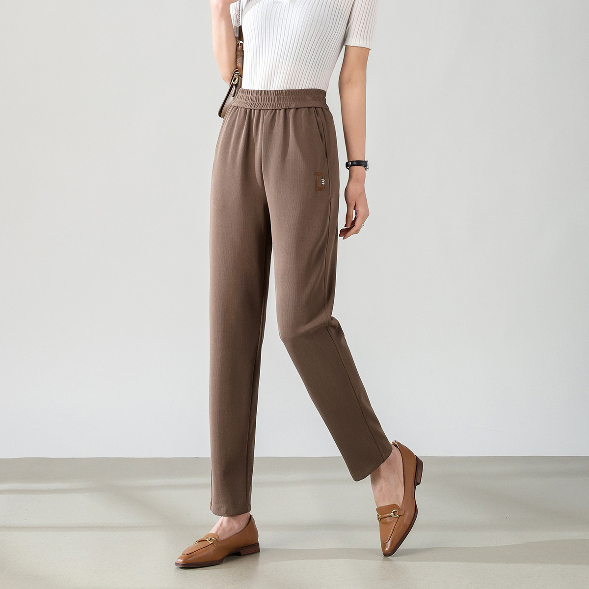 【莫代尔】秋季薄款纯色简约透气直筒裤时尚百搭高腰气质休闲裤女 250143