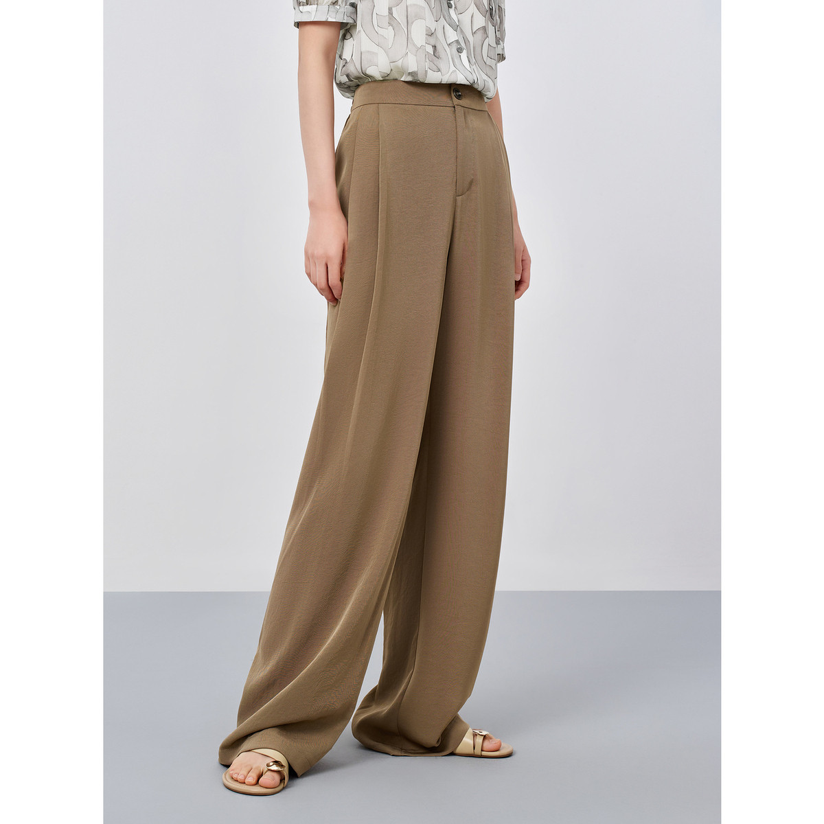 玖姿旗下安娜蔻系列通勤商务肌理感阔腿休闲裤女装夏季 863756