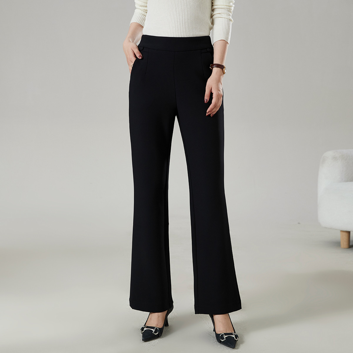 春秋小个子显瘦喇叭裤女式简约气质休闲裤通勤职业长裤 694239