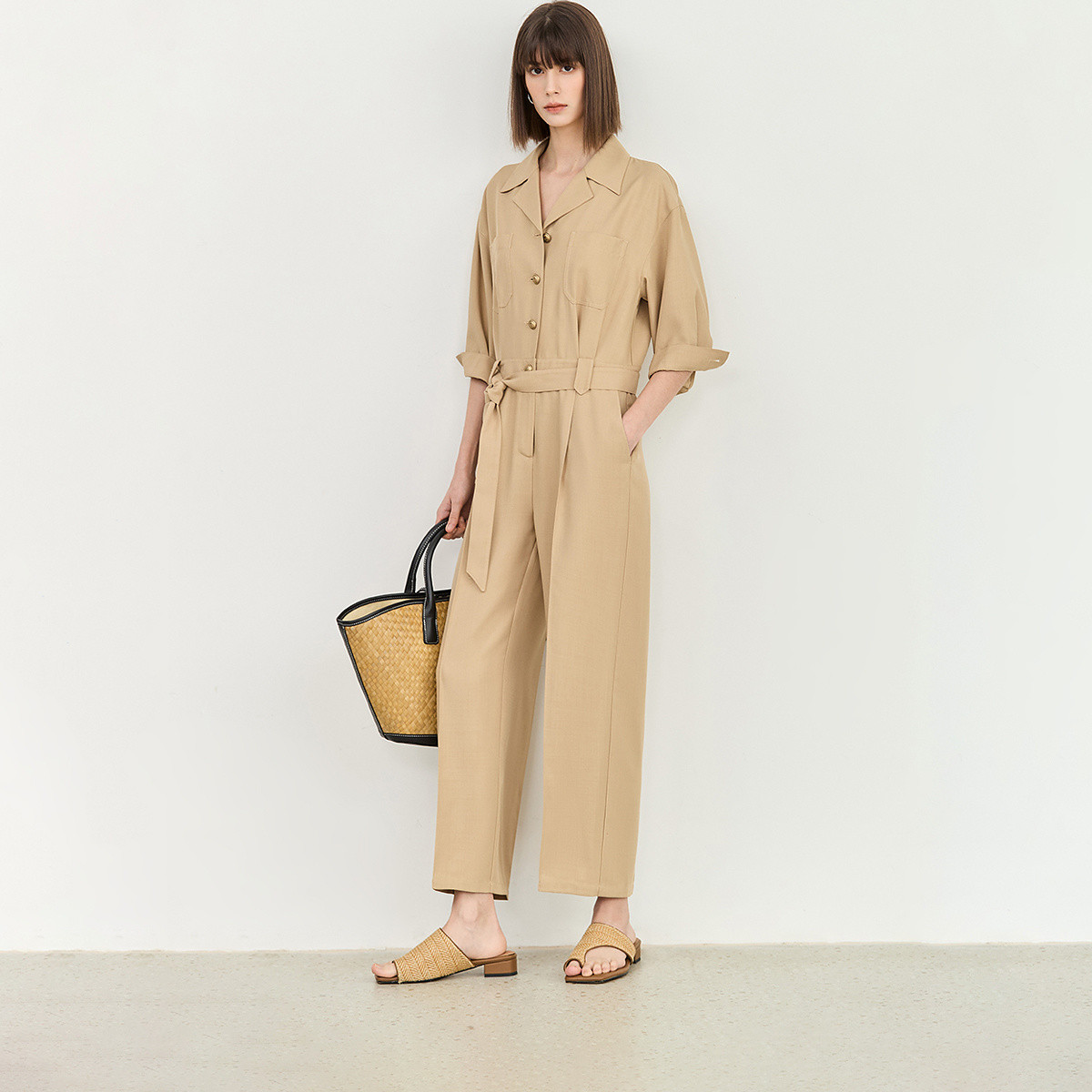 夏季都市通勤款时尚腰带休闲显瘦高腰工装裤连体裤 276699