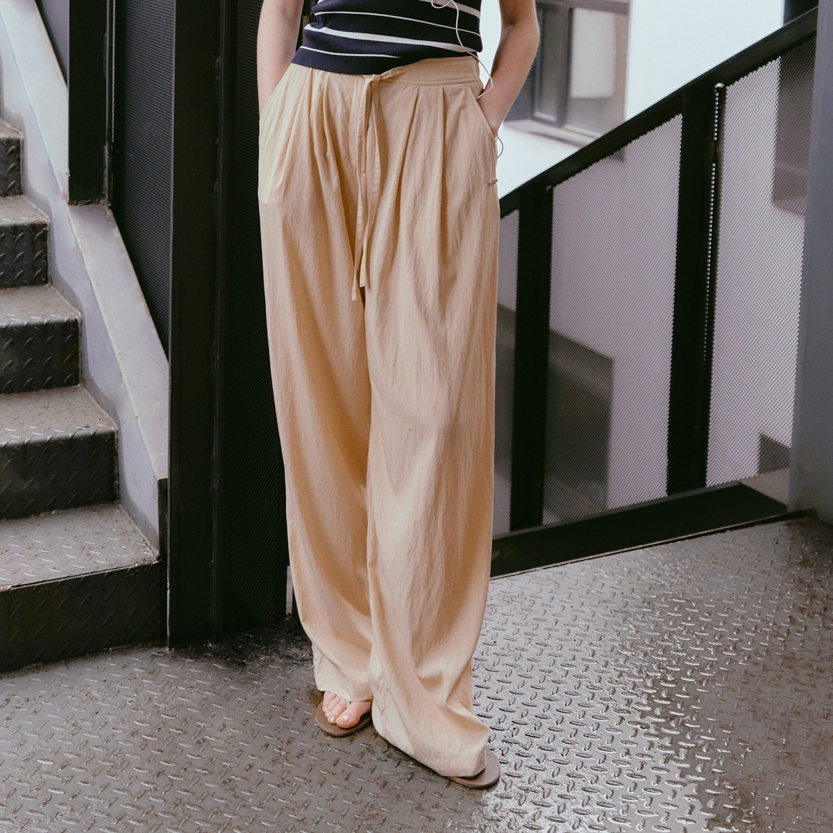 个性抽绳系带欧版显瘦直筒裤夏季简约百搭气质女式休闲裤 256989