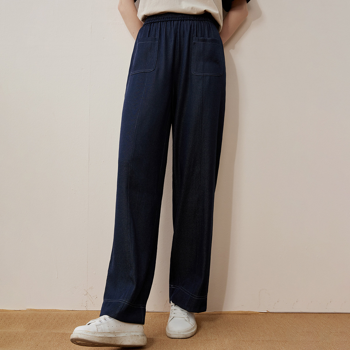 玖姿旗下安娜蔻系列都市休闲百搭松紧腰舒适直筒裤女装夏季 112012