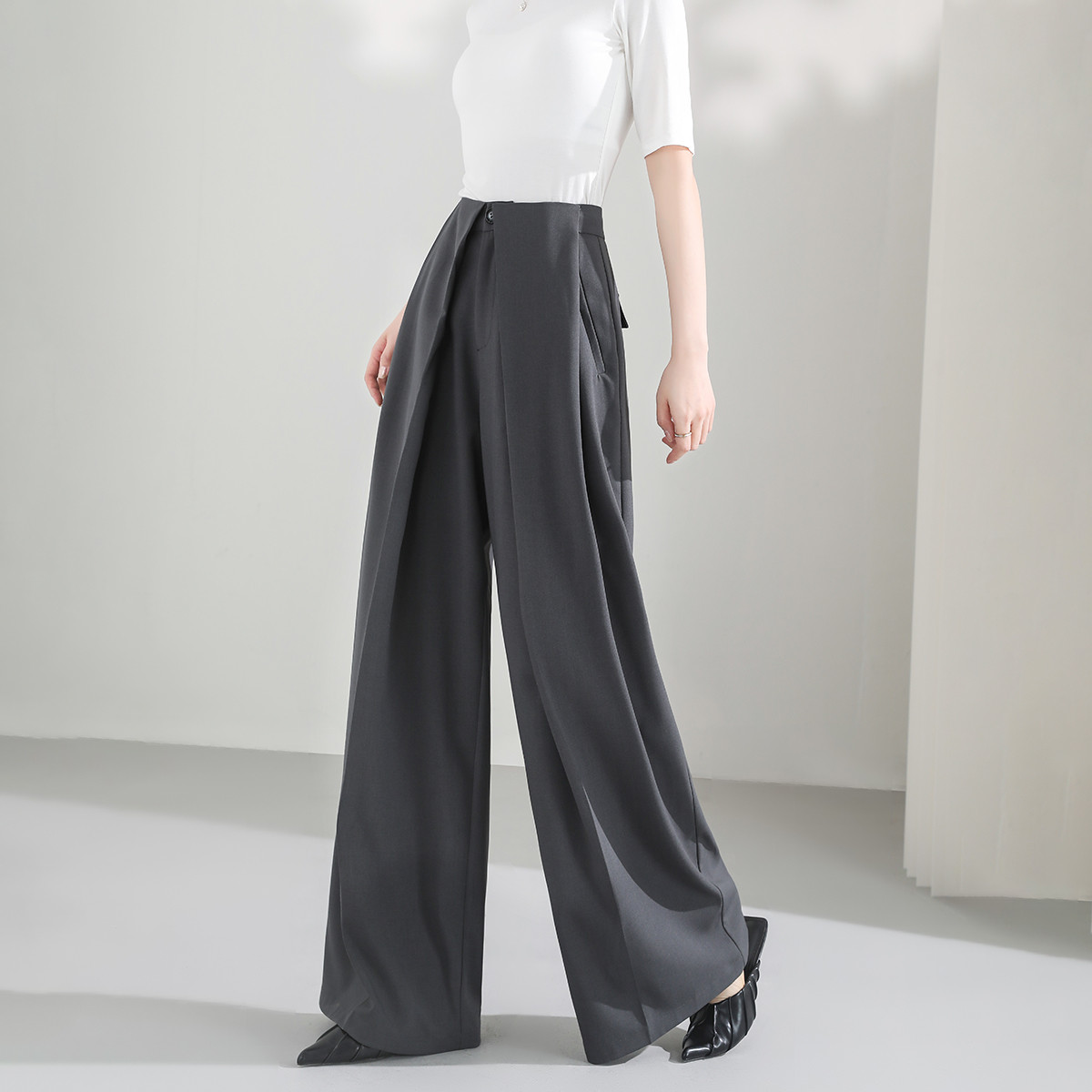 春秋新款褶皱设计感休闲裤女式百搭高腰阔腿裤垂坠感拖地长款裤子 607519