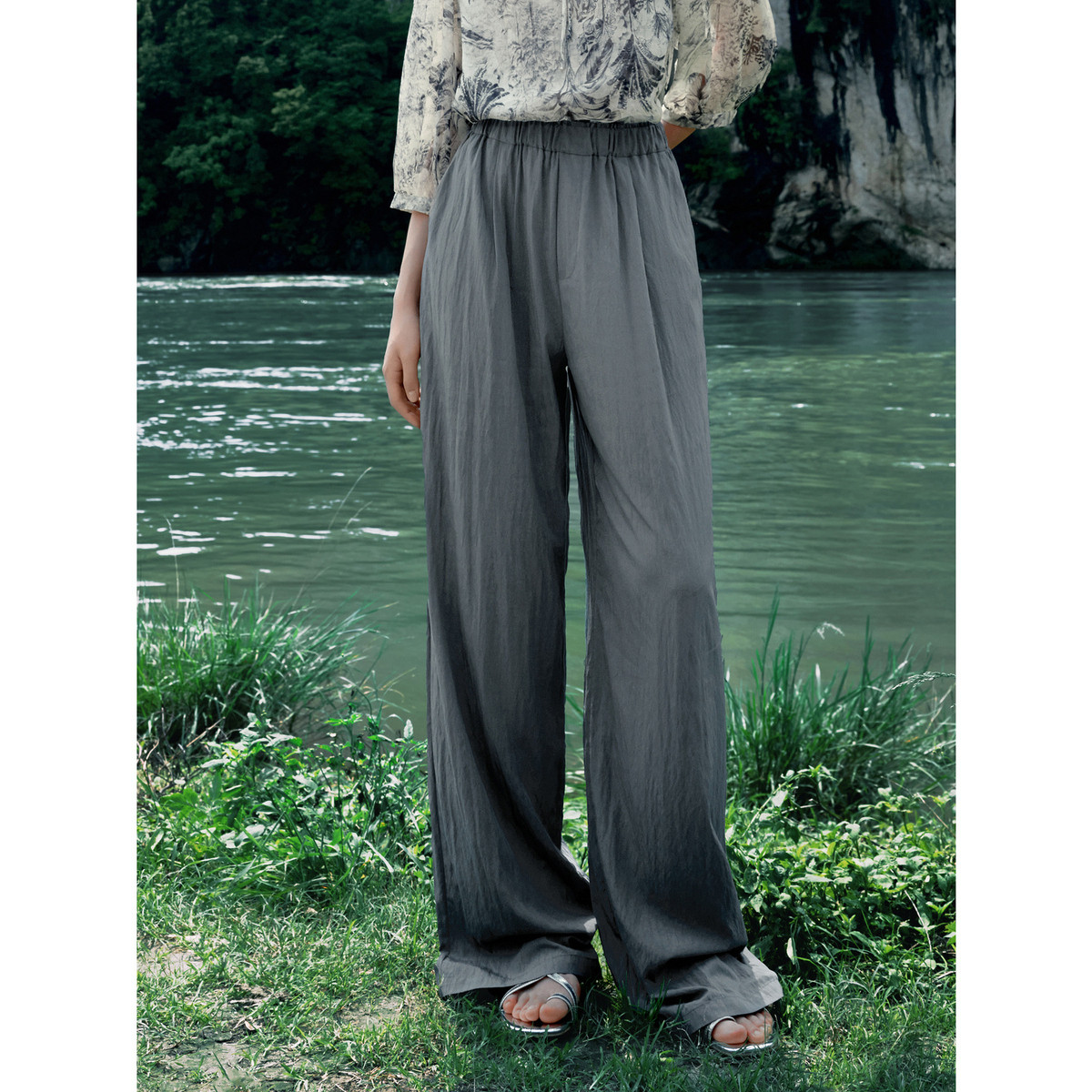旗下安娜蔻系列休闲慵懒风肌理薄松紧腰阔腿裤休闲裤女夏季 461836
