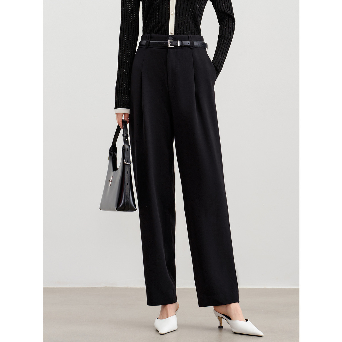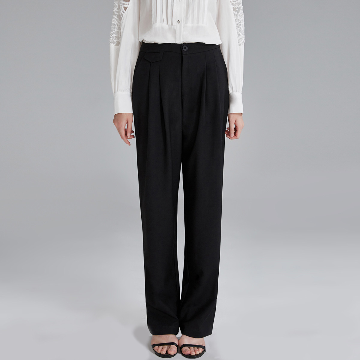 玖姿旗下安娜蔻系列通勤压褶刺绣休闲裤女春季 433676