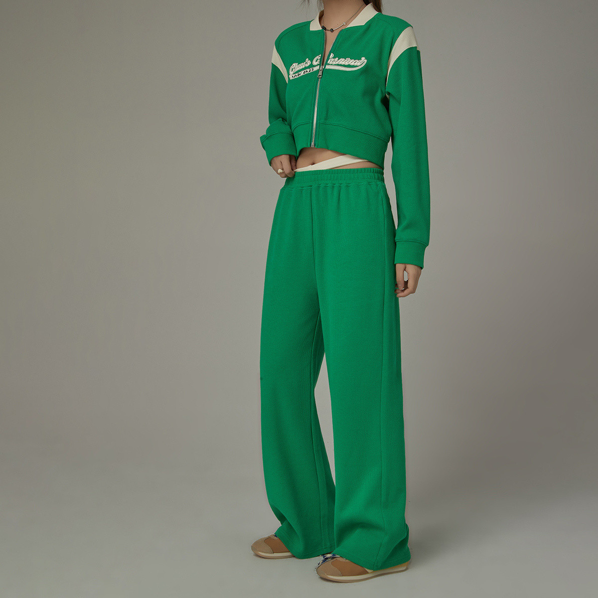 地素烫钻长裤春秋运动休闲棉质阔腿裤女 771723