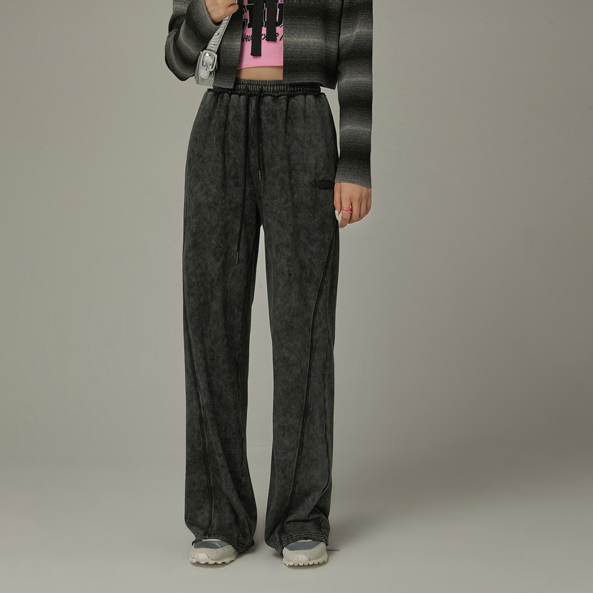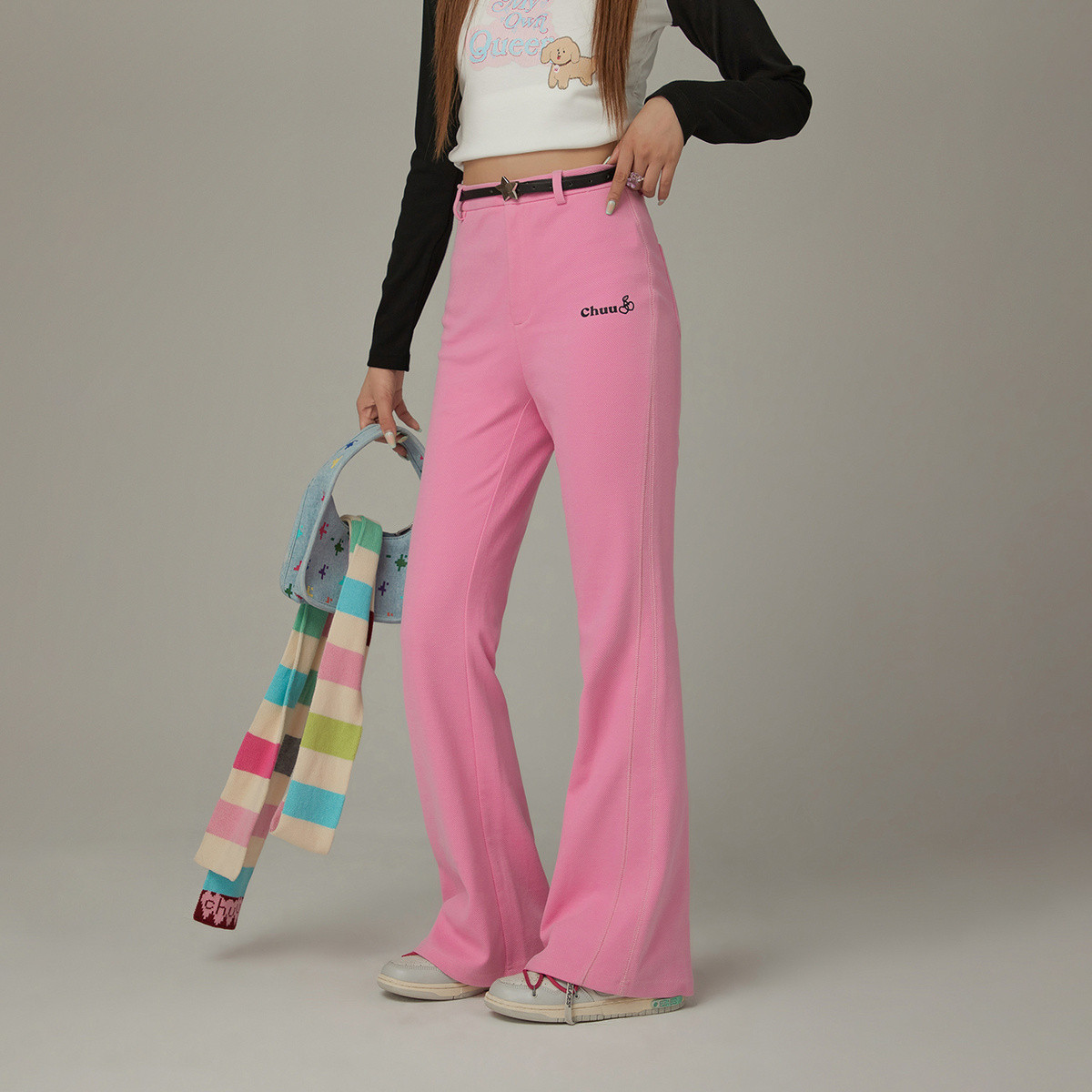 字母印花微喇休闲裤女春秋纯色高腰设计感显瘦长裤子 912595