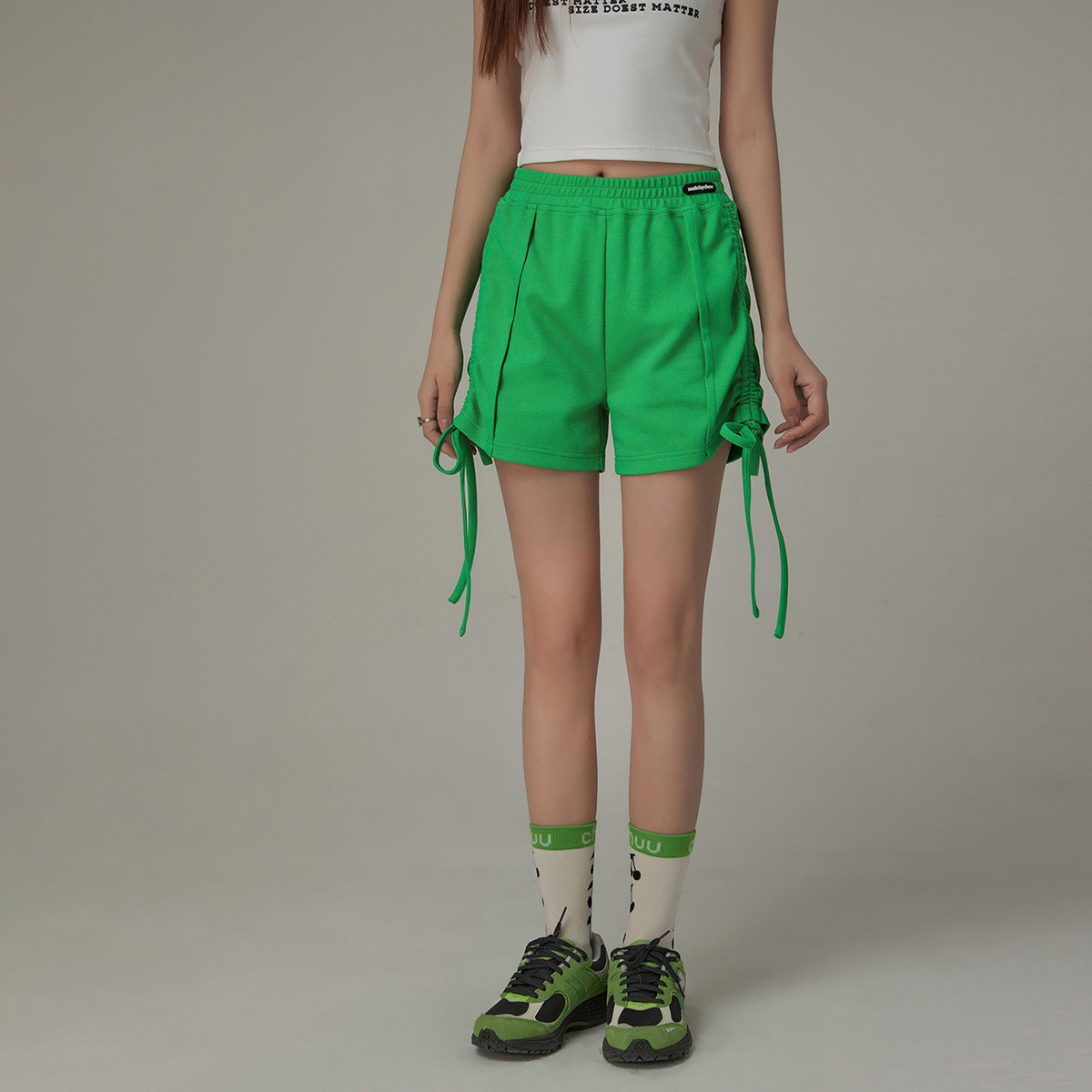 高腰抽褶休闲裤女夏设计感松紧腰潮酷阔腿短裤子 425235