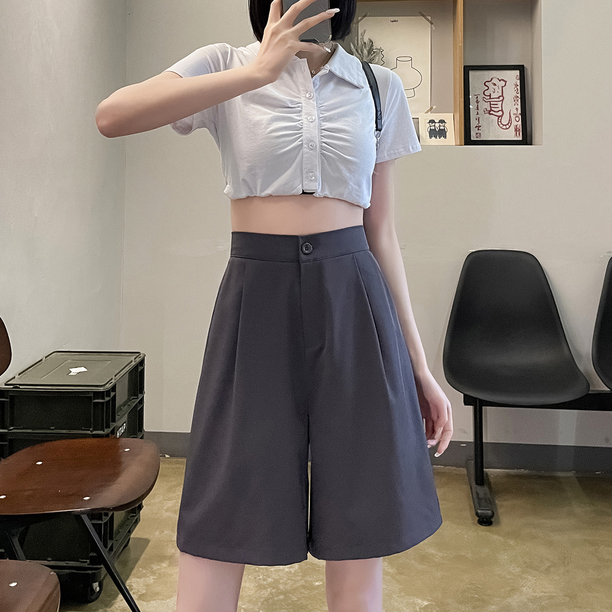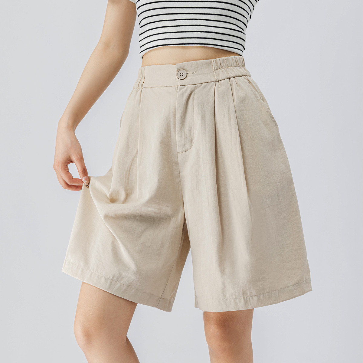 休闲裤女夏季宽松显瘦简约百搭压褶直筒阔腿A字短款裤子 690200