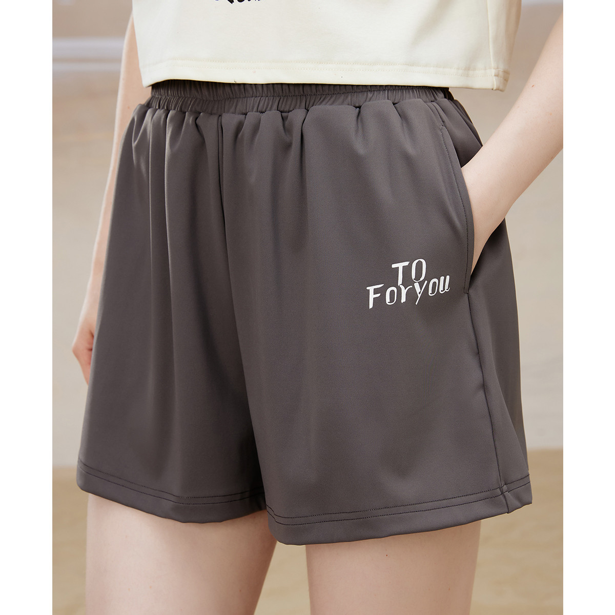 米子旗夏季纯色女式休闲裤腰部抽绳设计宽松显瘦阔腿裤薄款短裤 980186