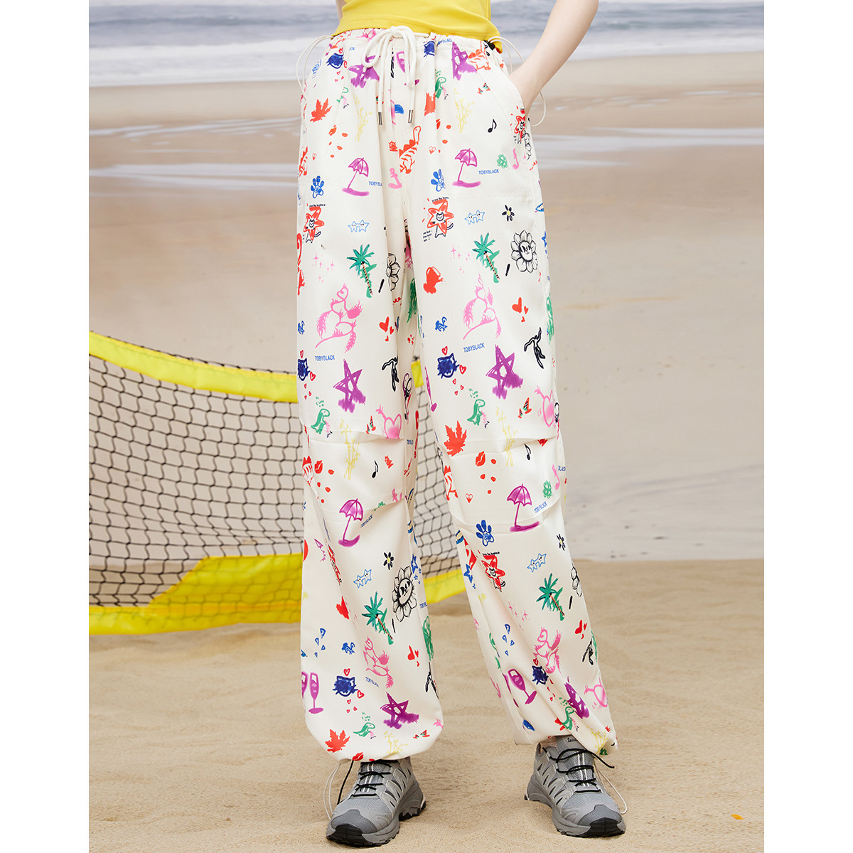 【童心未泯】手绘彩色卡通图口袋工装束脚裤夏女式休闲裤 285085