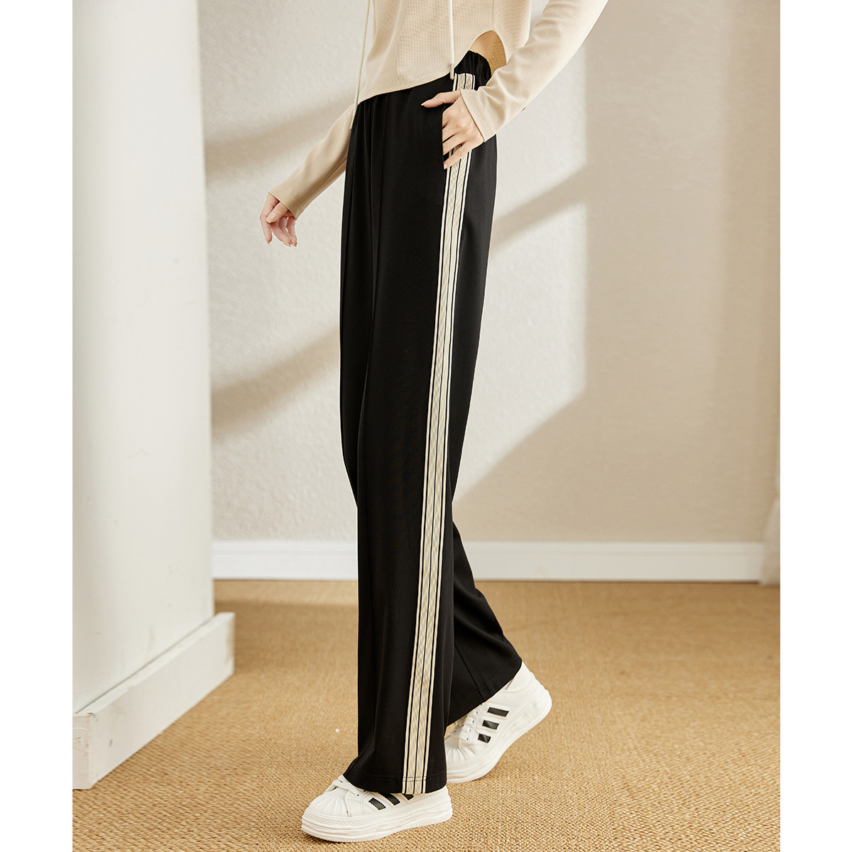 【运动休闲】条纹装饰织带阔腿裤春季运动百搭女式休闲裤 754717