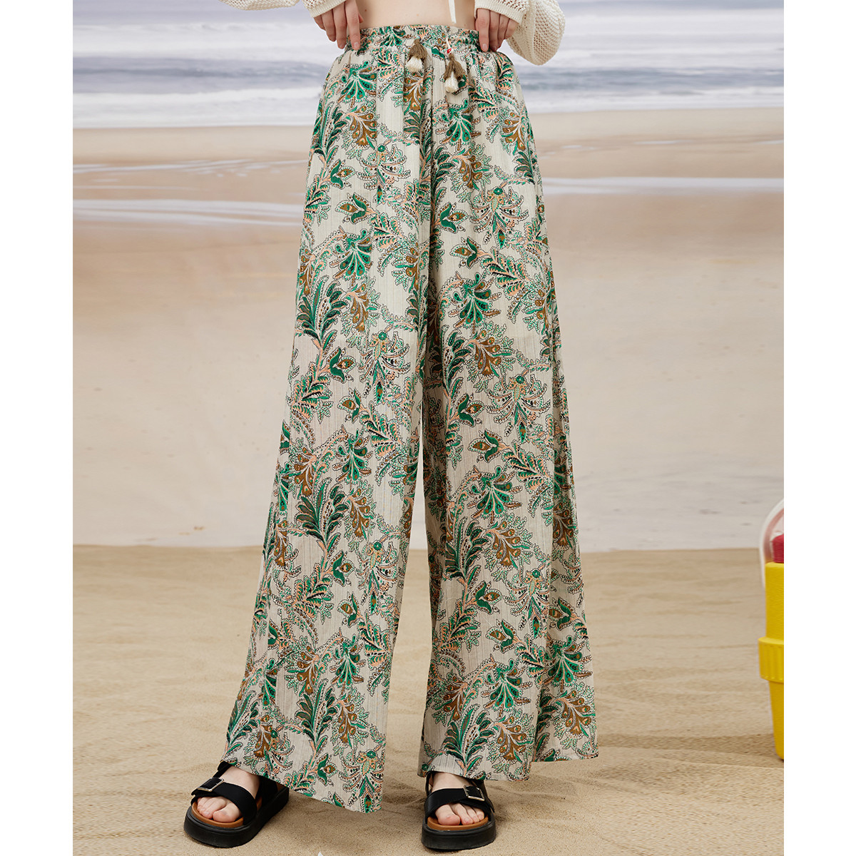 高腰休闲度假风花卉裙裤夏季热带雨林风个性女式休闲裤 468893