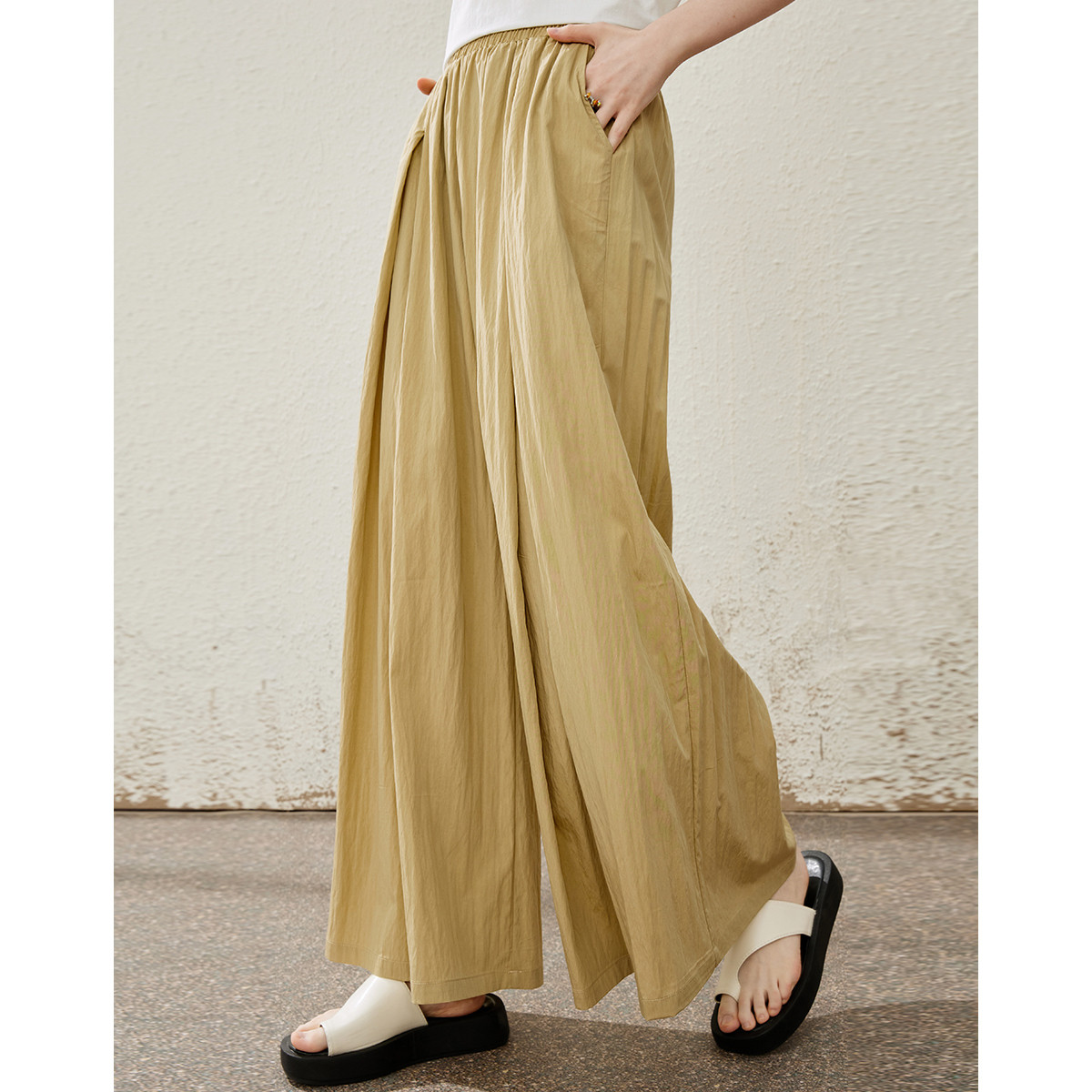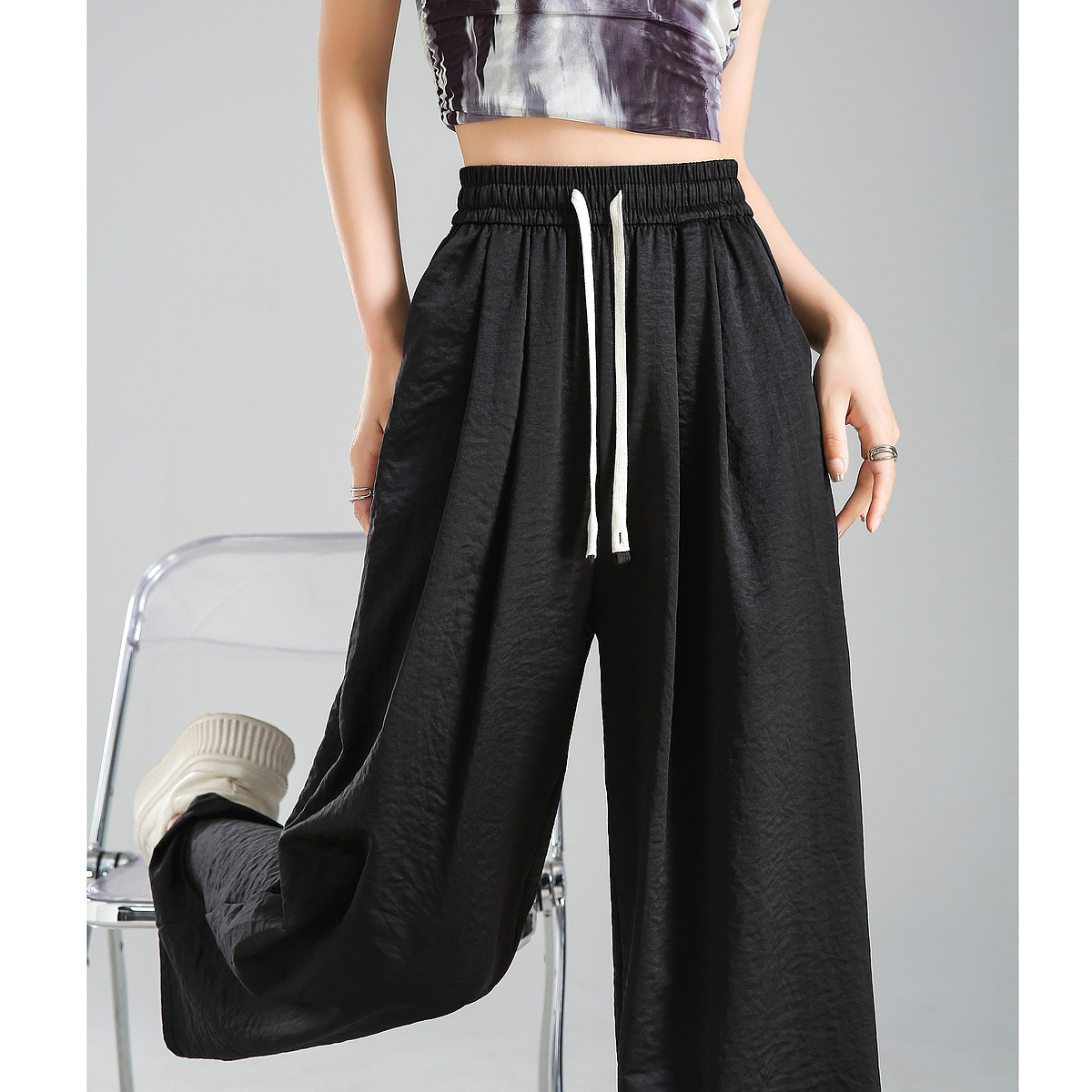 飘逸宽松薄款高腰垂感阔腿裤夏季纯色简约设计女式休闲裤 462877