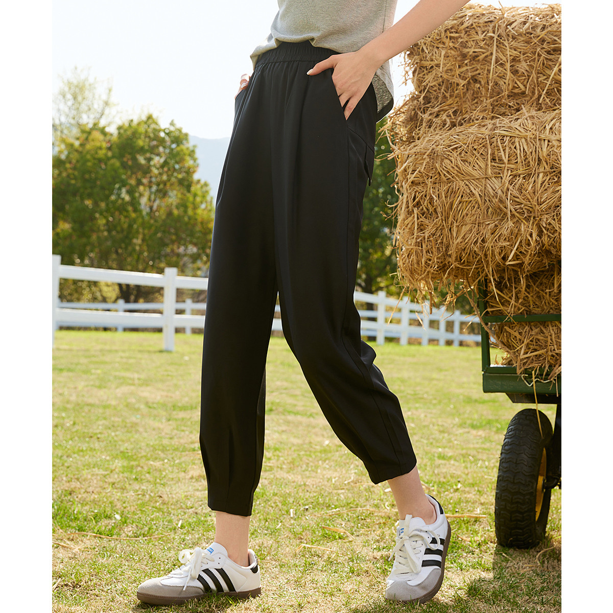 纯色简约高腰九分束脚裤春季百搭遮肉街头风女式休闲裤 955997