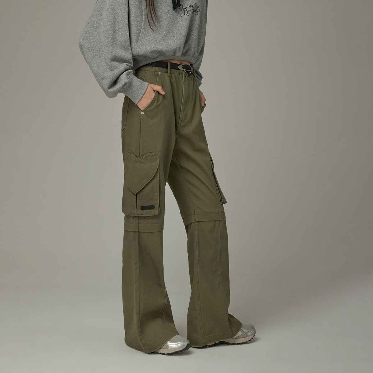 高腰口袋微喇休闲裤女士早春秋设计感爱心宽松长裤子 459859