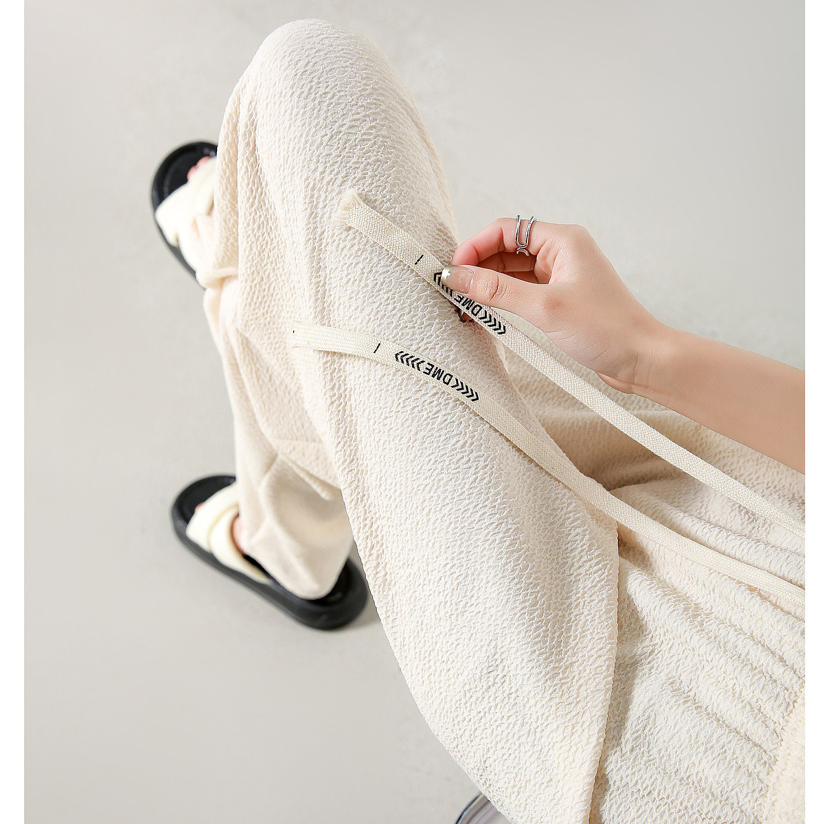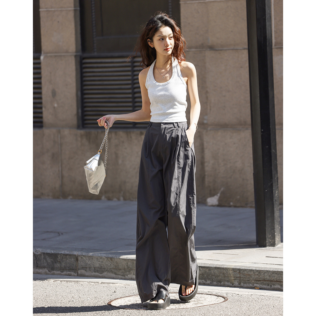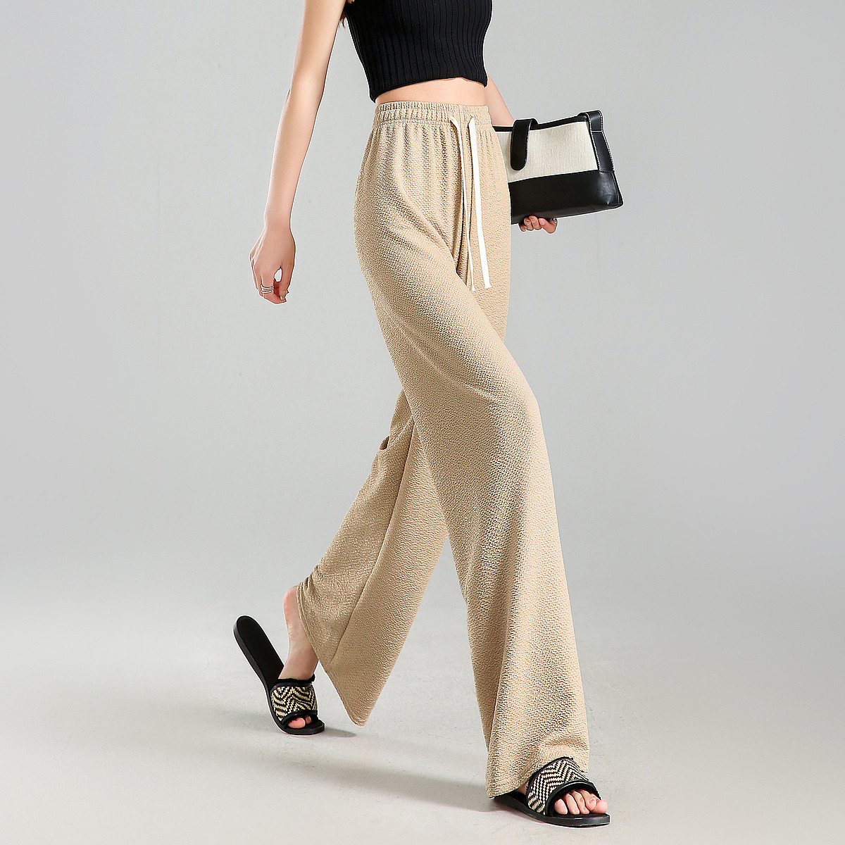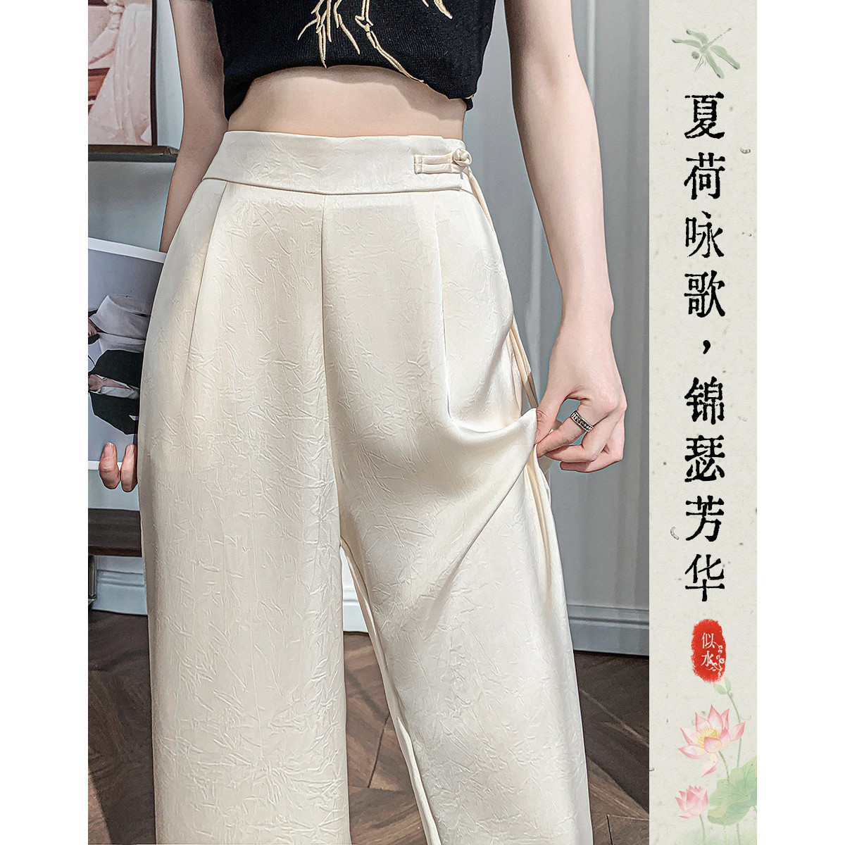 【高级感松紧直筒裤】夏双面缎抓皱设计感小众显瘦女式休闲裤 594904