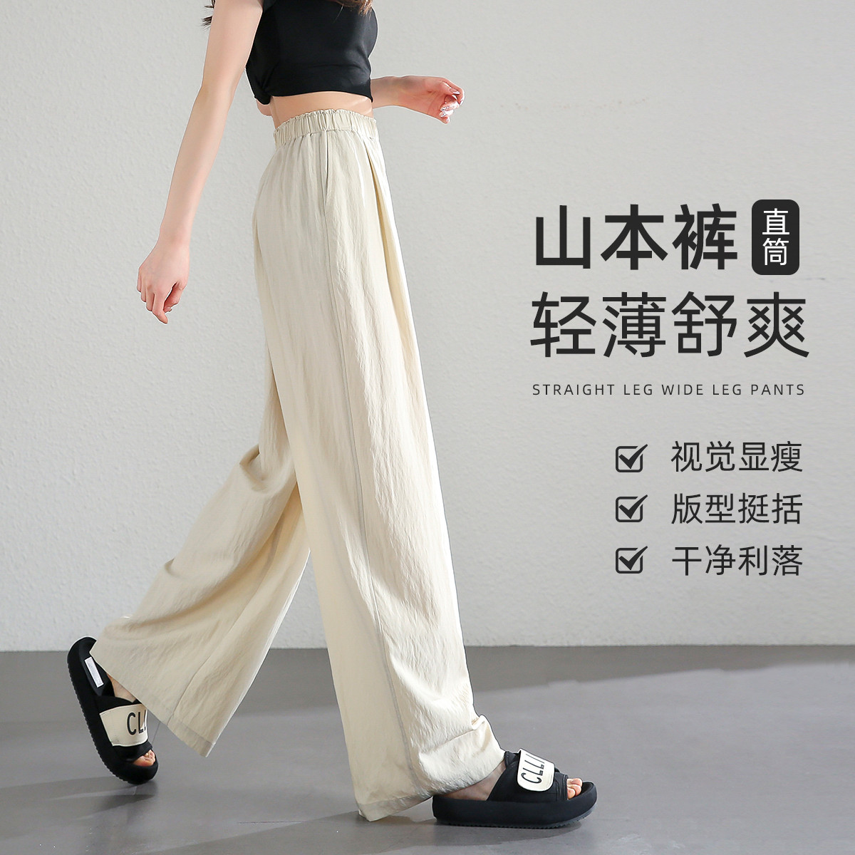 【慵懒褶皱裤】夏松紧腰直筒显瘦藏肉舒适飘逸垂坠休闲裤 869377