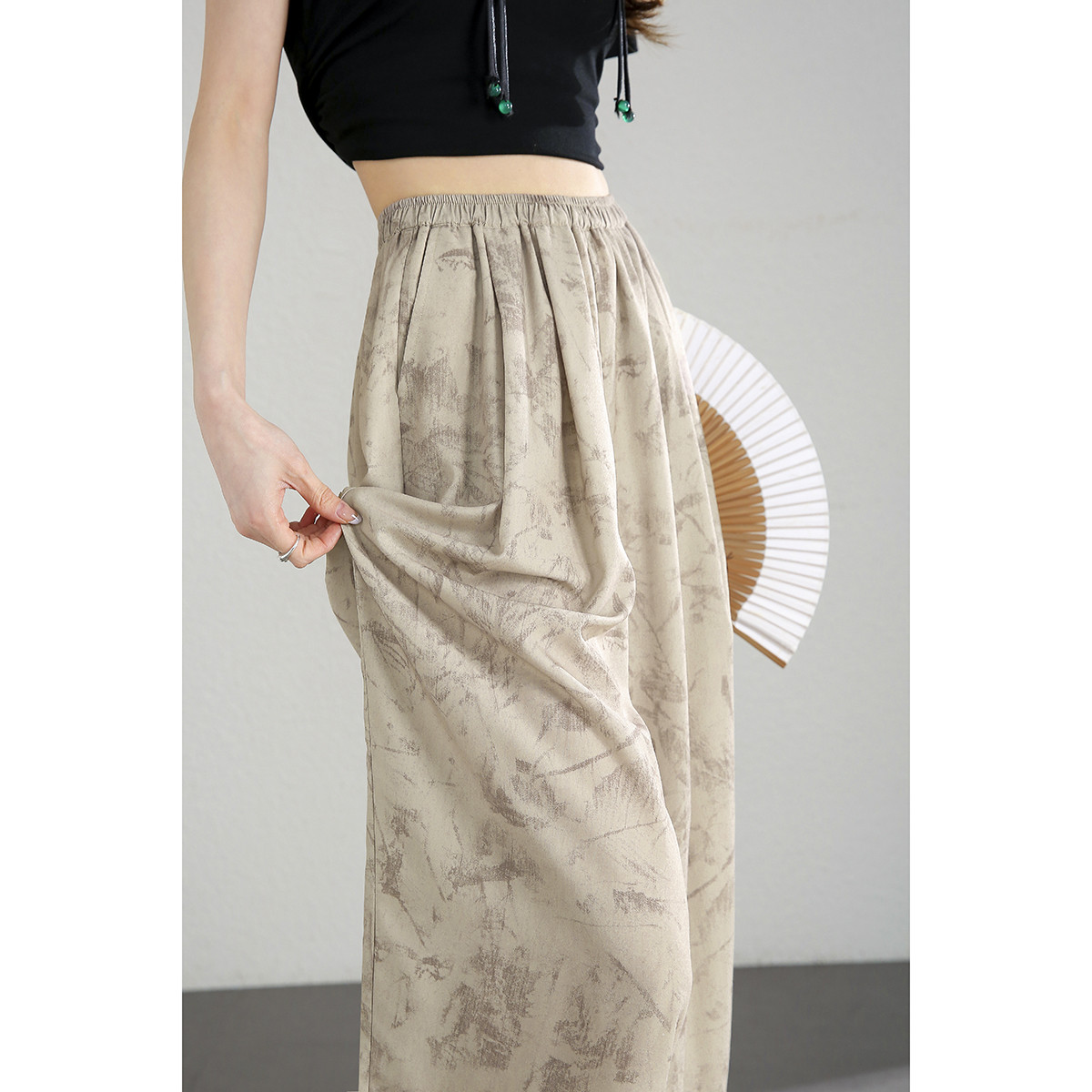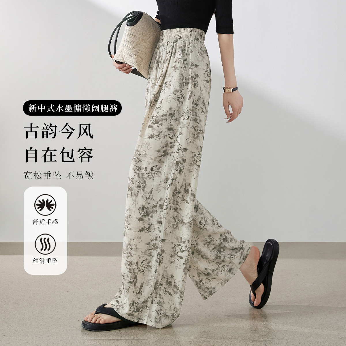 【新中式水墨印花阔腿裤】慵懒休闲日常百搭冰丝凉凉山本休闲裤 308417