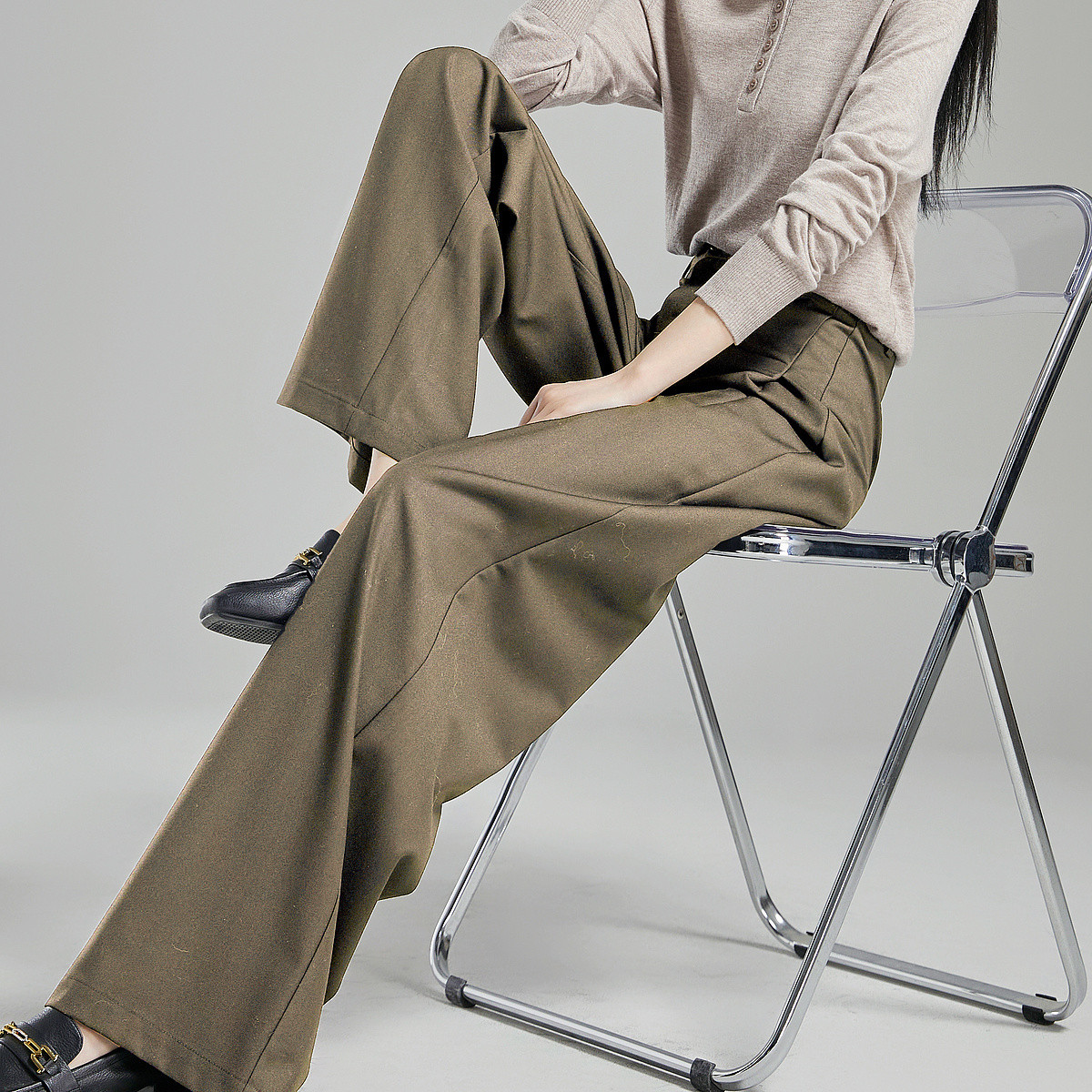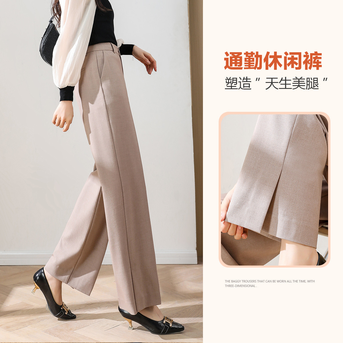 【古法沉浸式】春秋中腰直筒女裤TR长裤拼接条纹西装裤休闲裤 937409