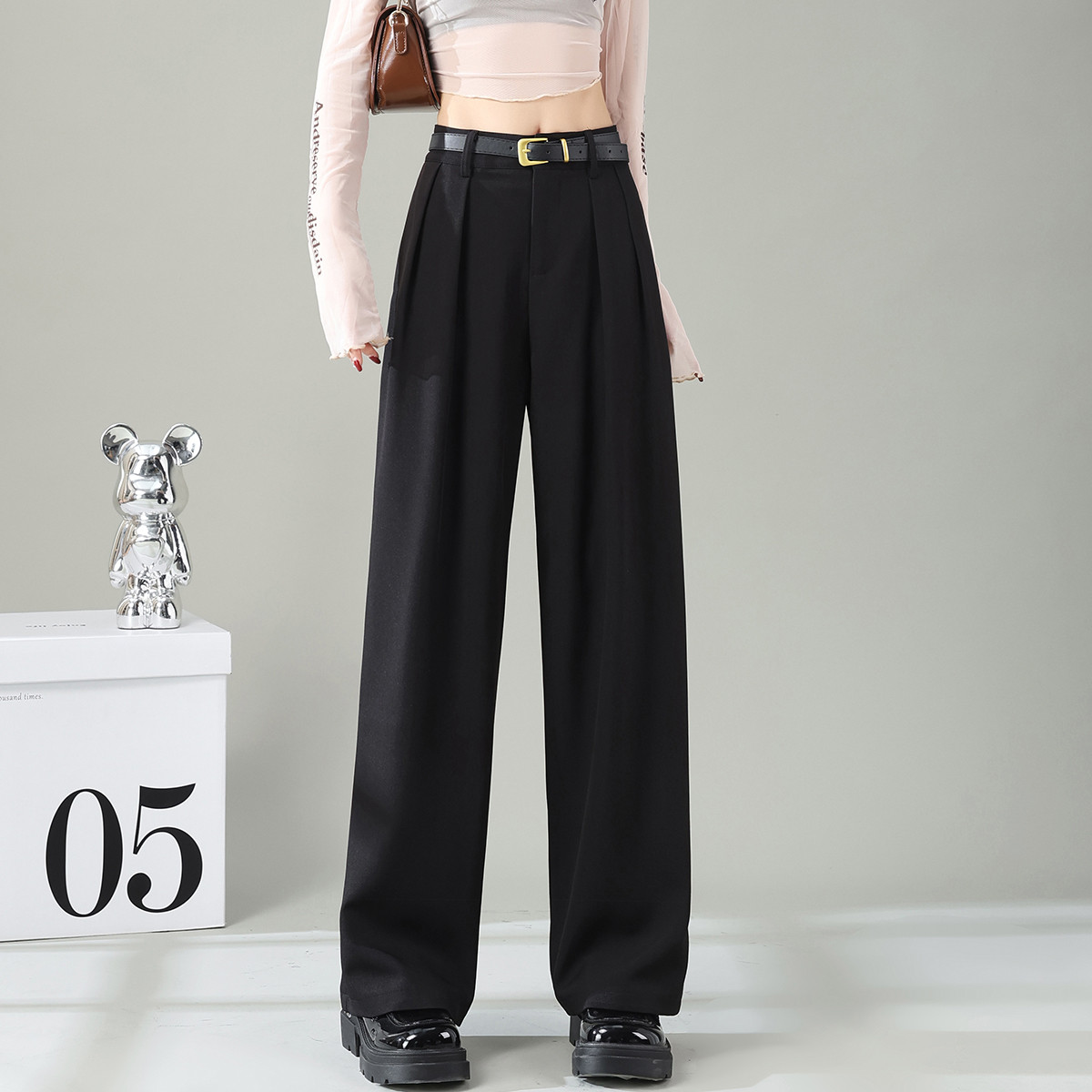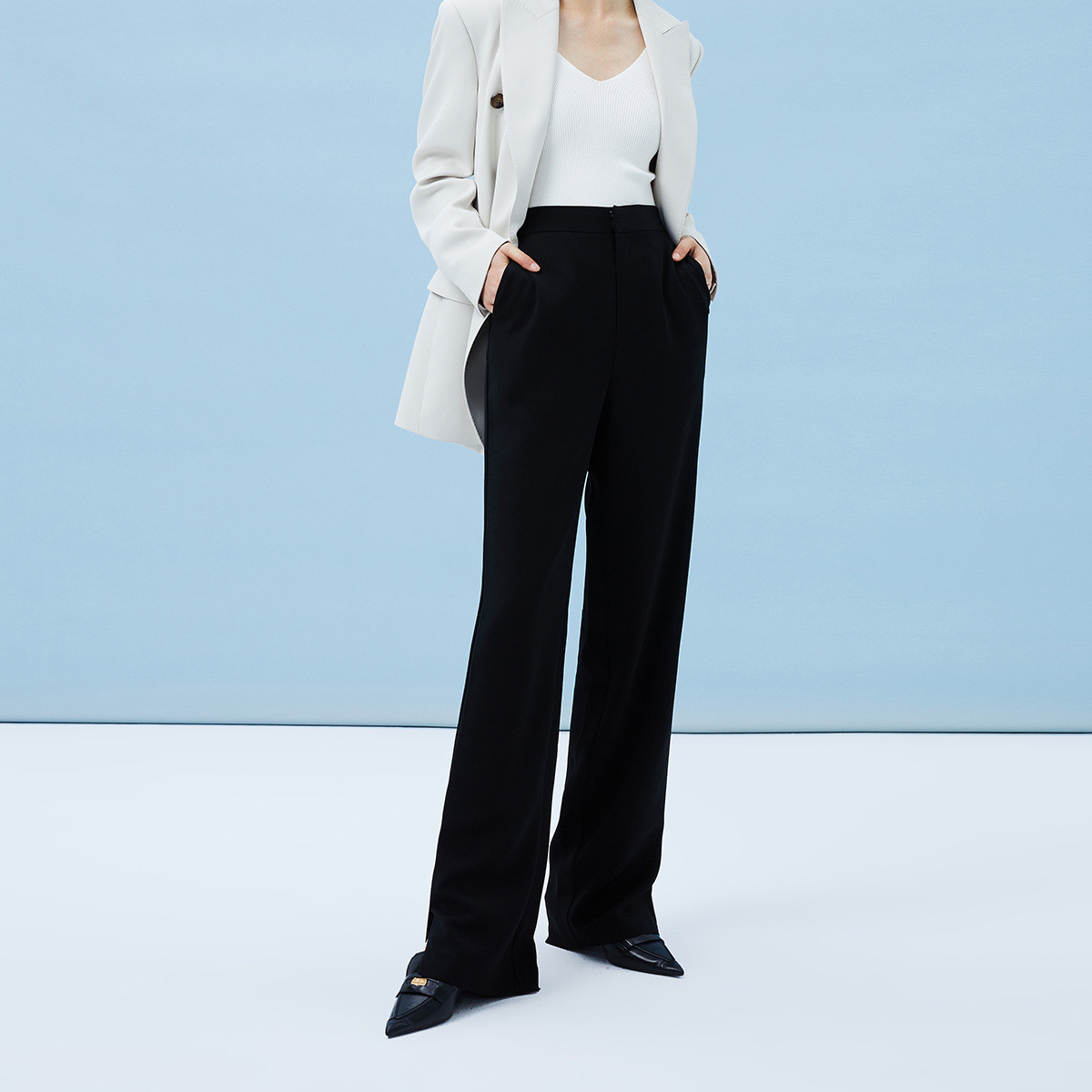 【褶皱设计感显瘦窄版裤女】春季款裤子女拖地直筒长裤 331339