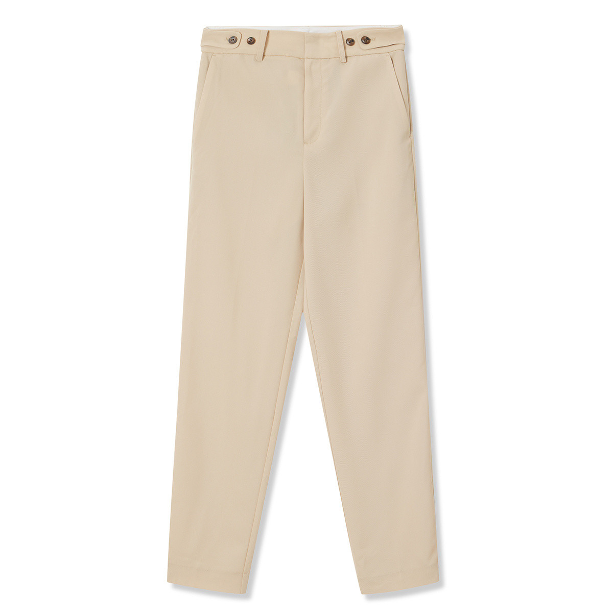 夏季薄款透气高腰气质时尚通勤百搭金属装饰直筒休闲裤女 793439
