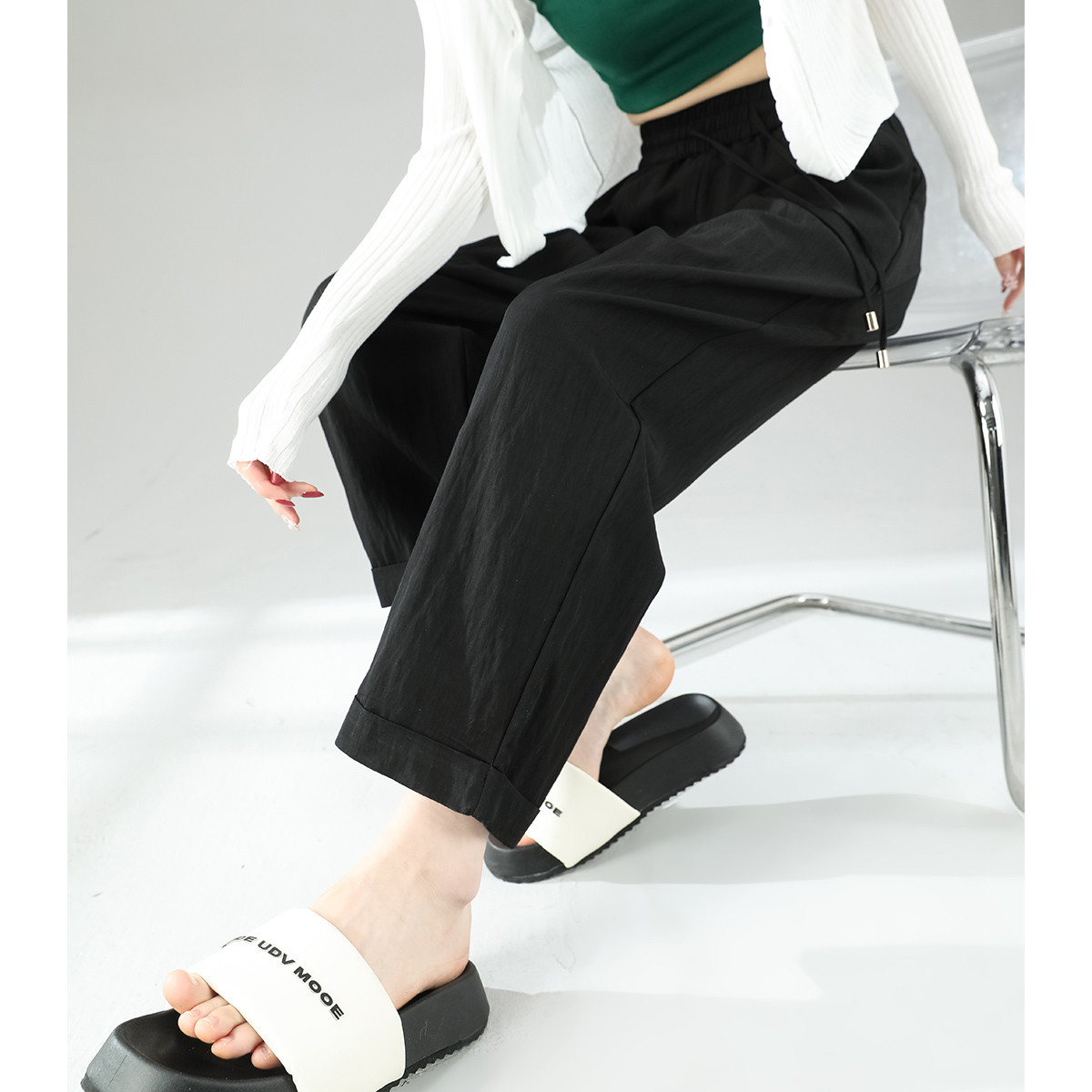 春季款松紧腰直筒九分裤女休闲裤女士阔腿裤纯色裤子女 378571