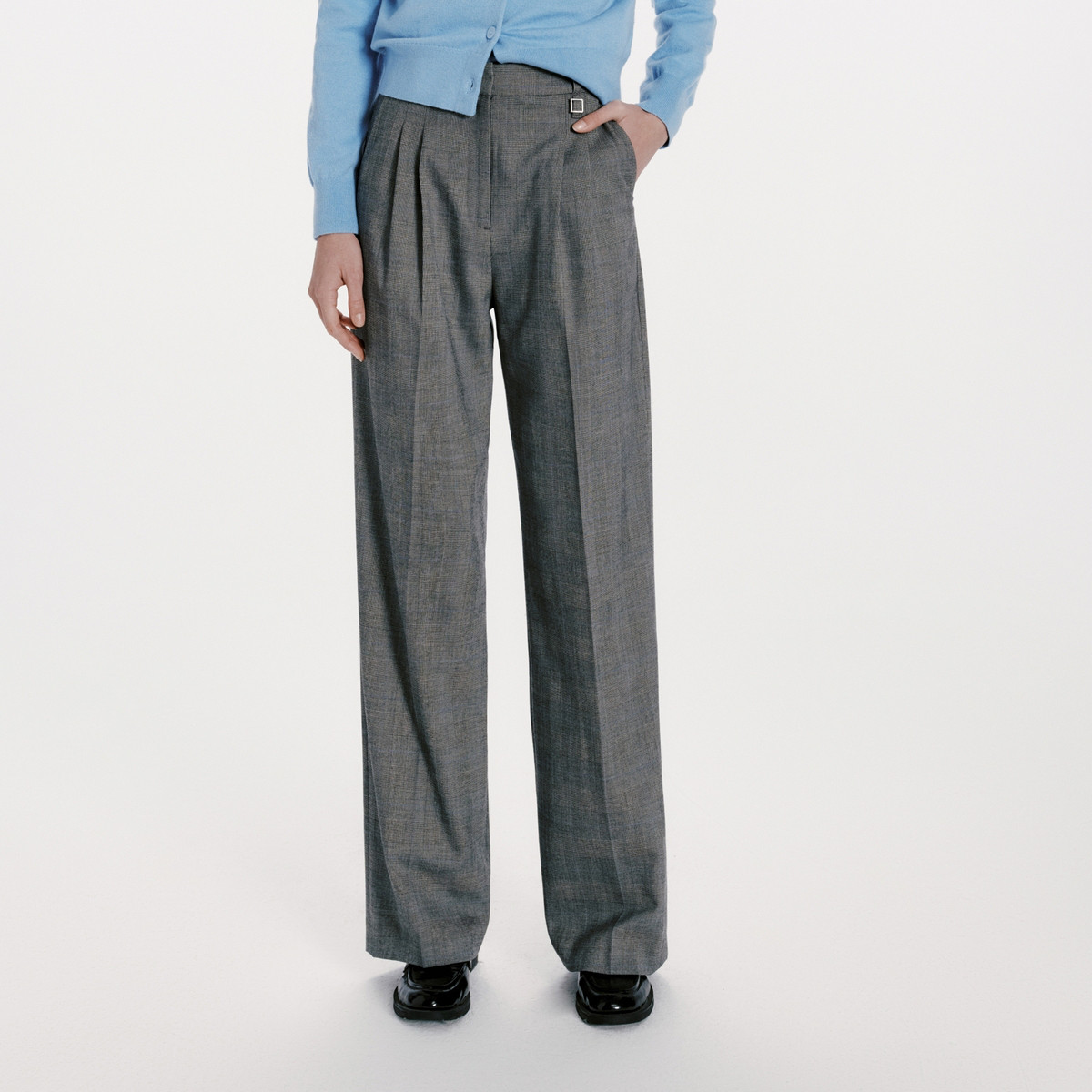 小熊女装春季复古休闲裤直筒阔腿裤西装长裤 397825
