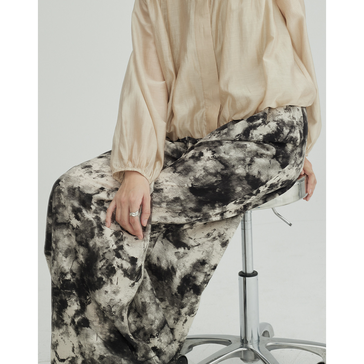 【水墨晕染感阔腿裤】夏款气质新中式层次花纹时髦长裤女 539650