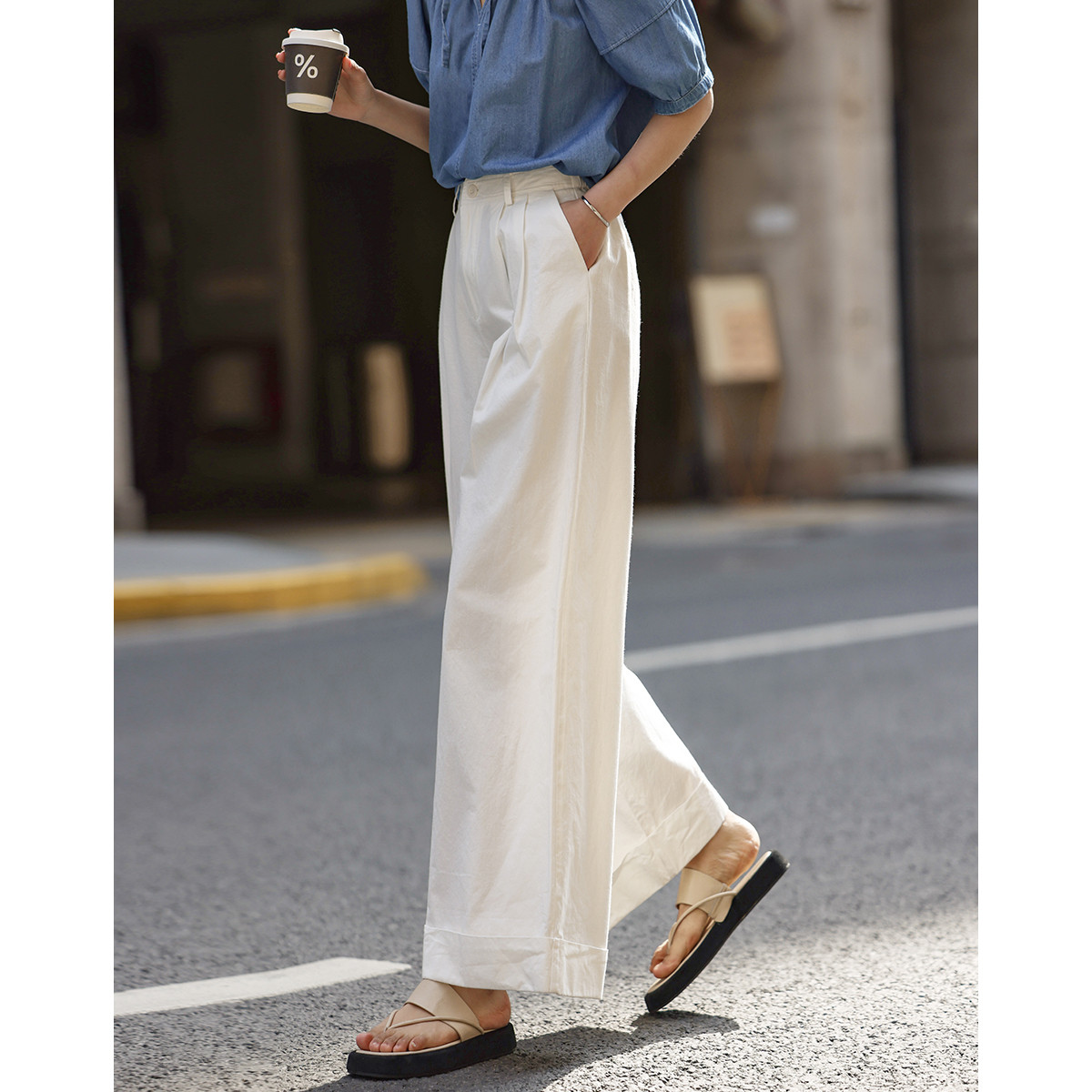 玖姿旗下安娜蔻系列都市休闲百搭松紧腰舒适直筒裤女装夏季 112012