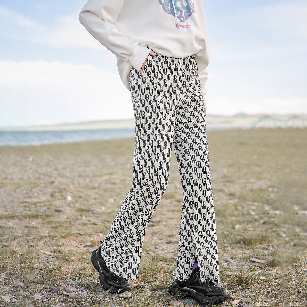 冬字母印花阔腿针织休闲裤女炸街垂感裤子潮 651092