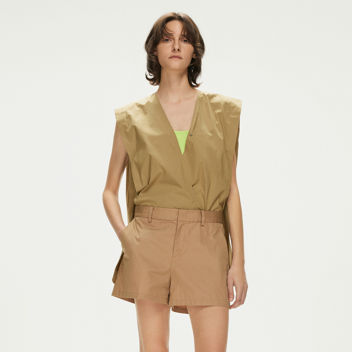 地素环保皮短裤春秋季直筒简约通勤休闲短裤女 725899