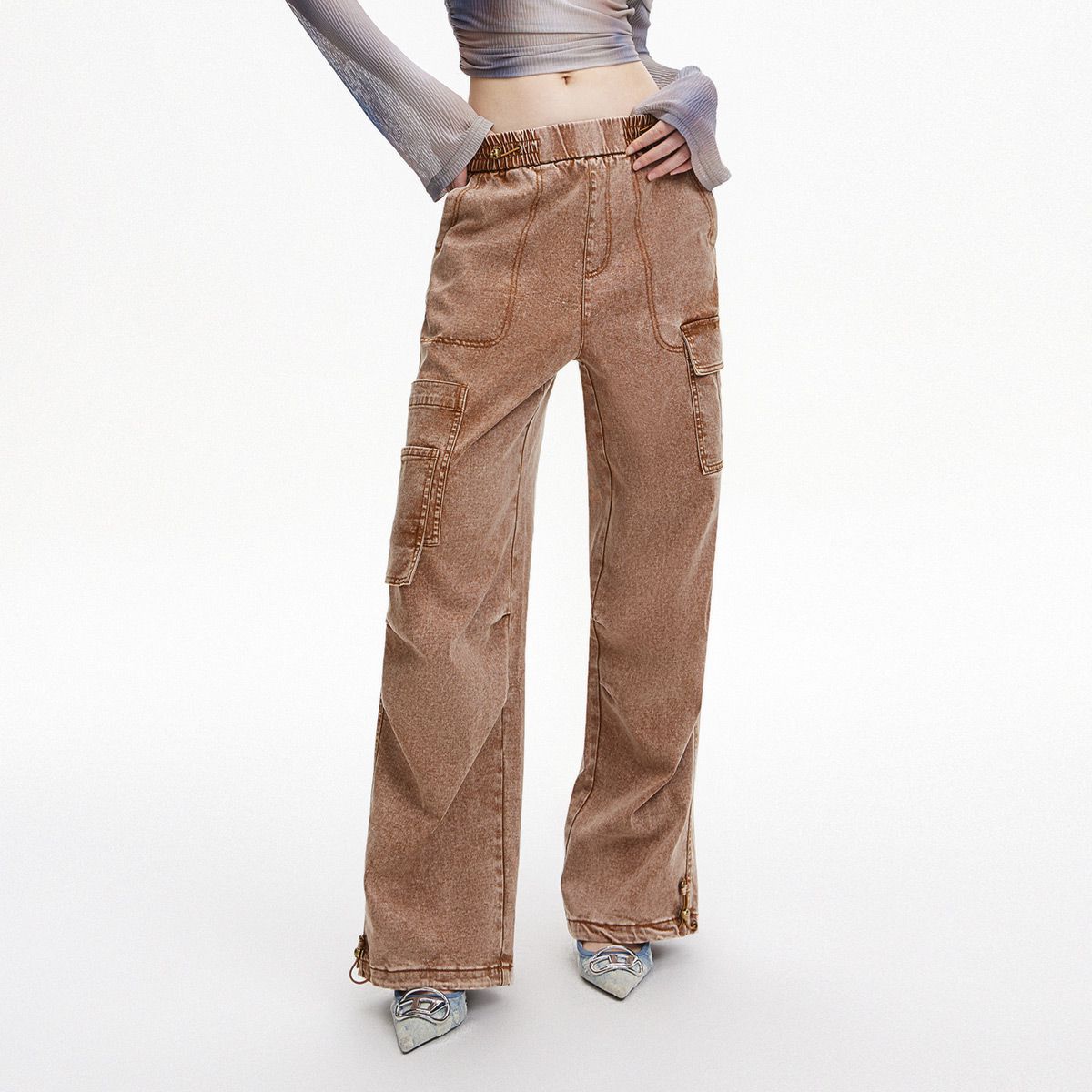 【做旧水洗】夏季高腰抽绳宽松阔腿休闲裤女 962330