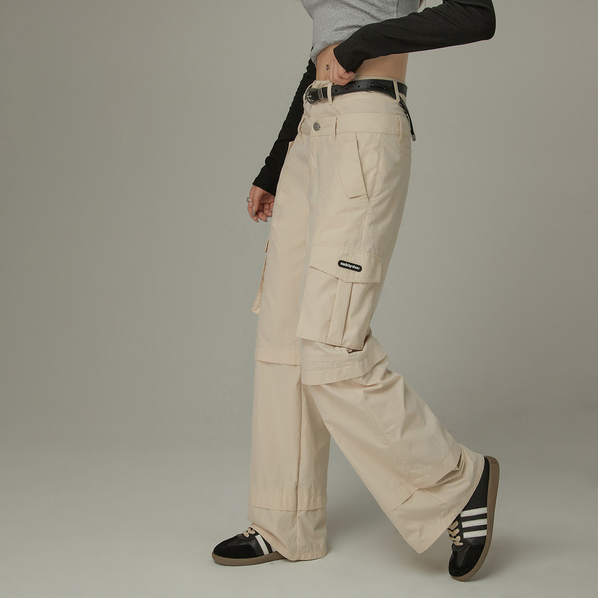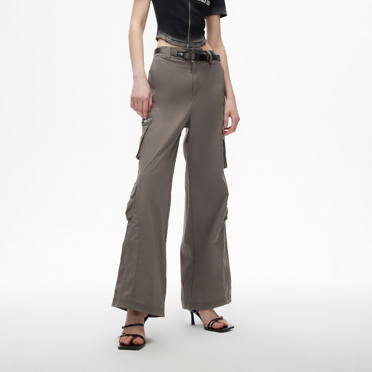 【机能风腰带】2025夏季时尚潮酷宽松高腰直筒裤休闲裤女 574810