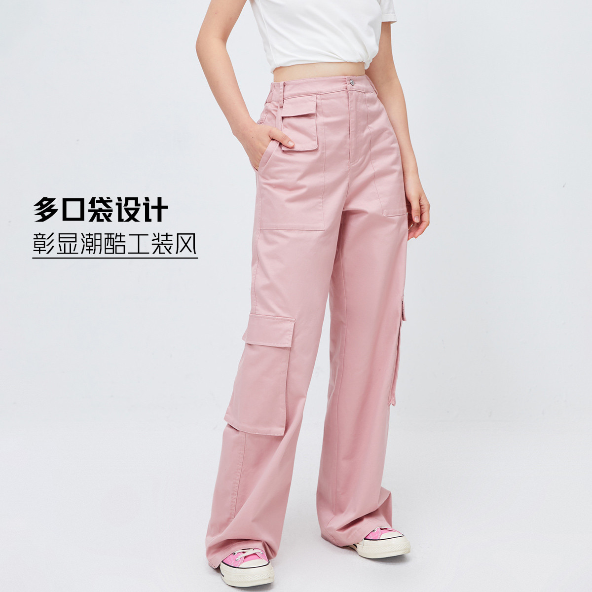 【工装风】夏季含莱赛尔口袋高腰宽松显瘦直筒休闲裤女 443802
