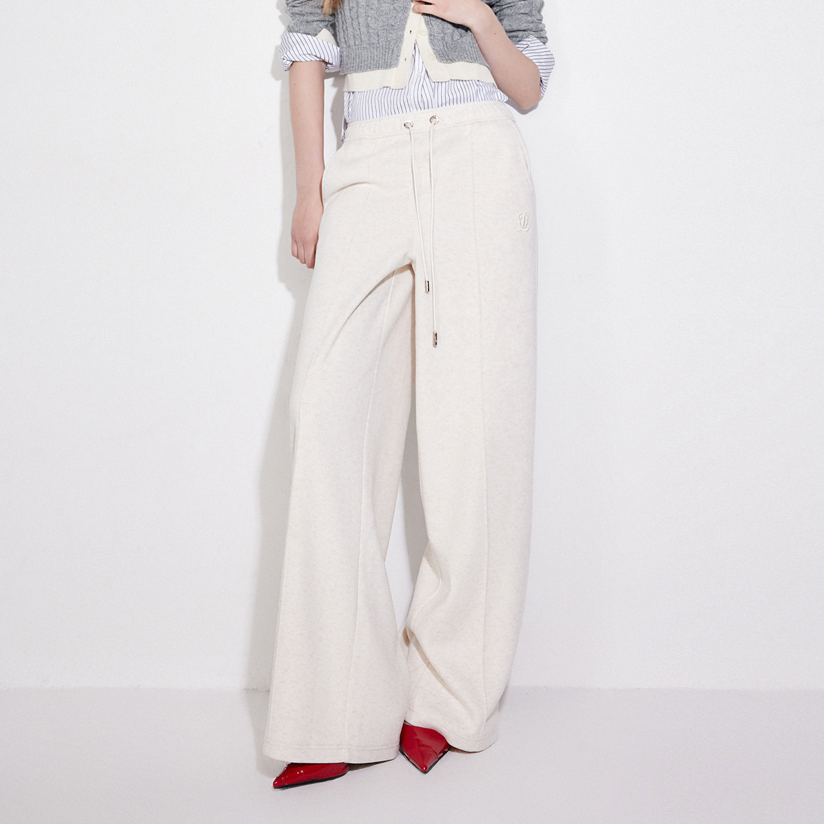 地素烫钻长裤春秋运动休闲棉质阔腿裤女 771723