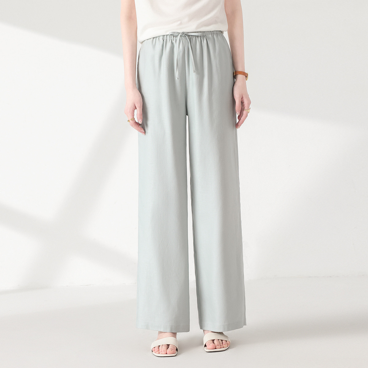 【含桑蚕丝】夏装纯色抽绳休闲裤女百搭舒适长裤薄款妈妈装阔腿裤 706771