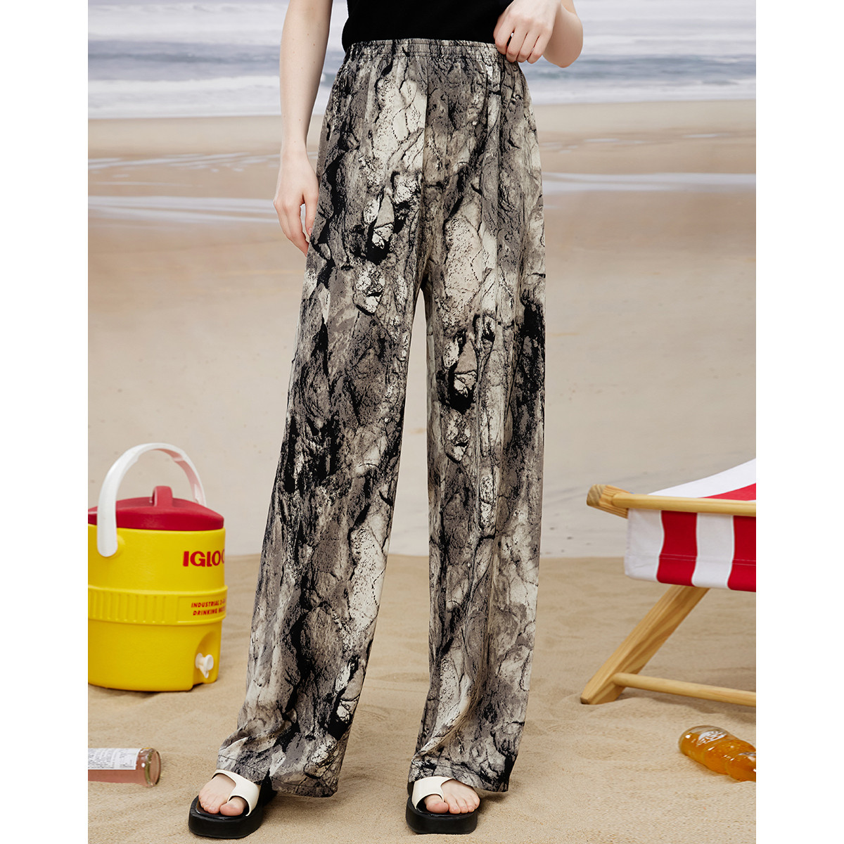 泼墨印花设计垂感直筒长裤夏季街头风百搭女式休闲裤 741341