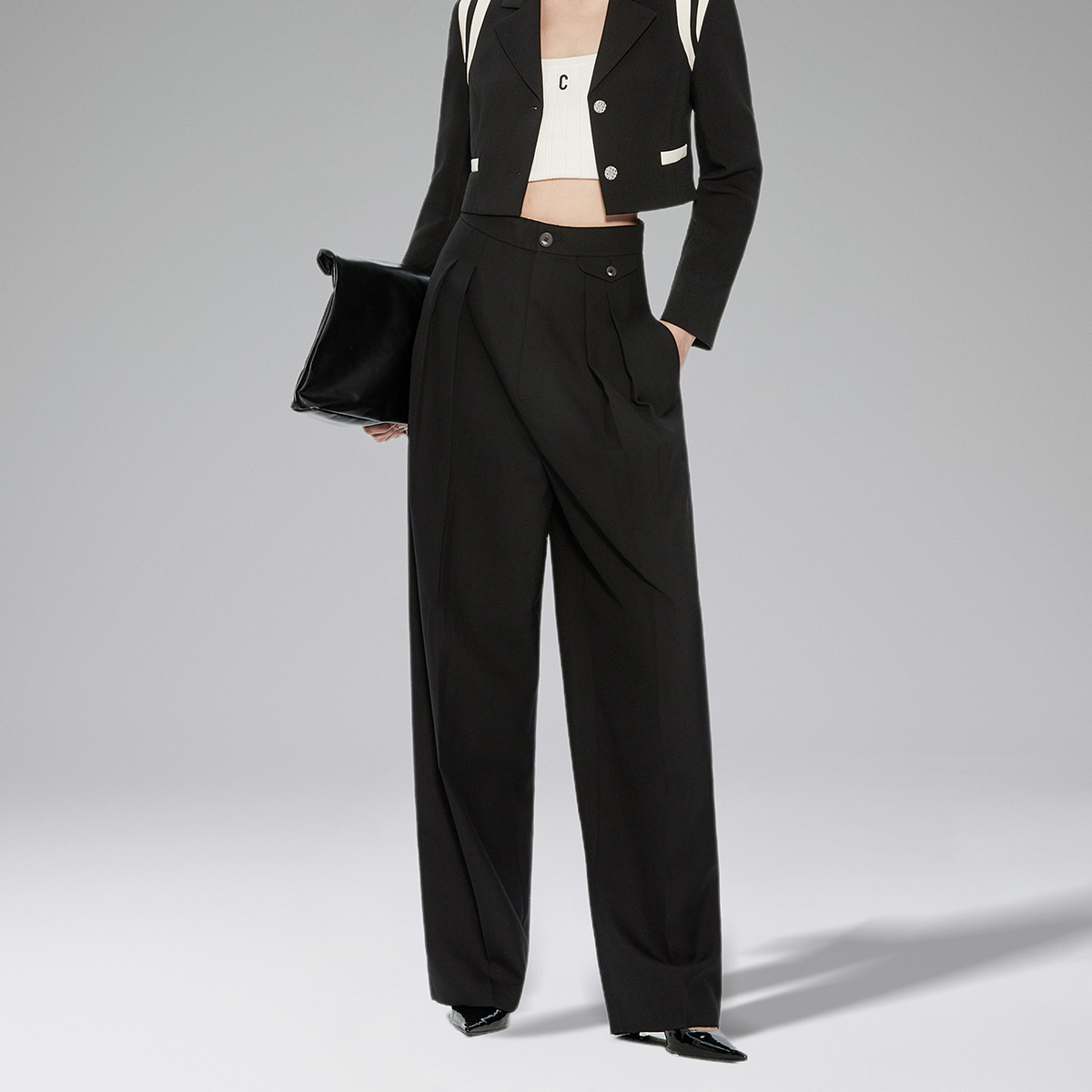玖姿旗下安娜蔻系列都市休闲百搭松紧腰舒适直筒裤女装夏季 112012