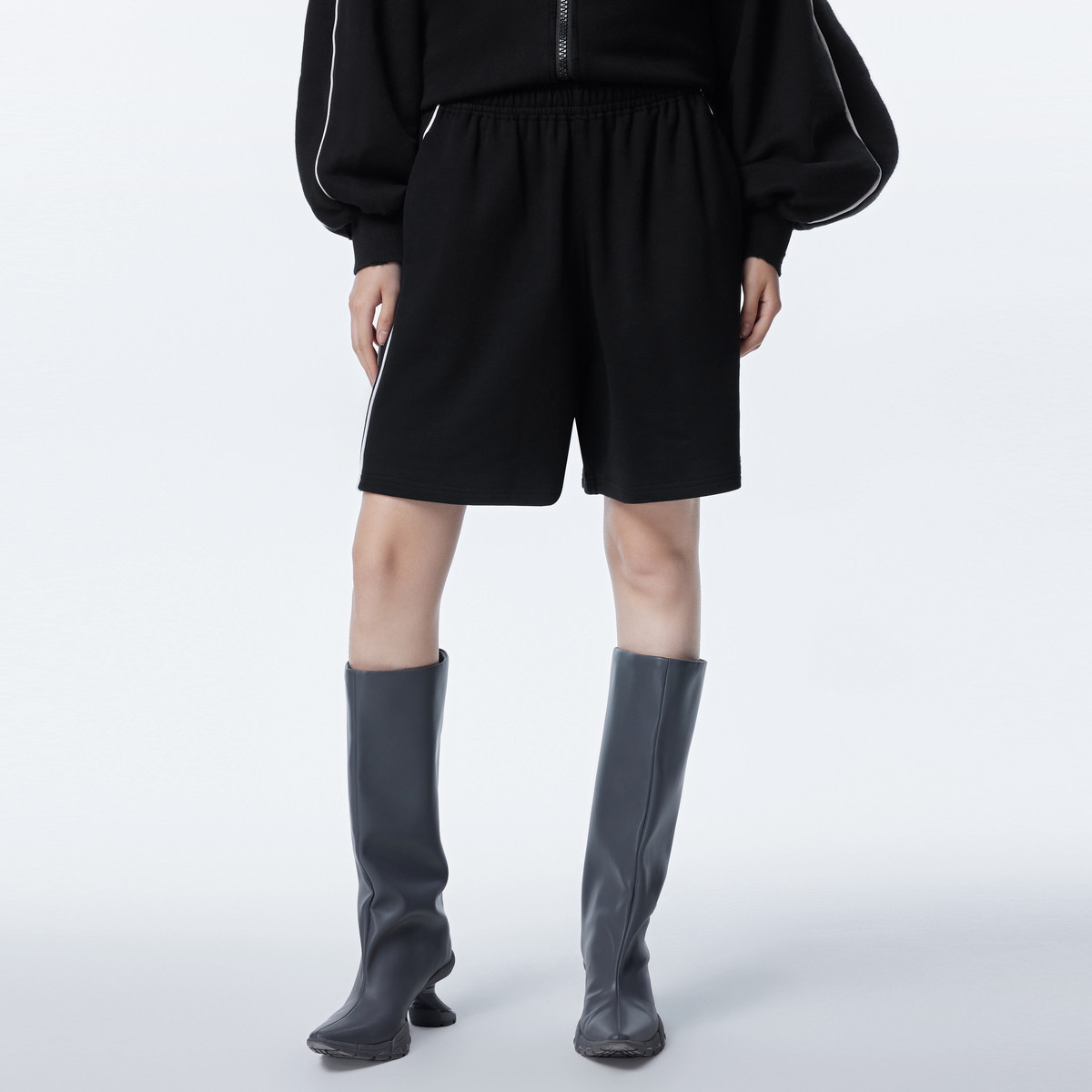 CHUU字母撞色休闲裤女秋设计感松紧腰宽松短裤 411987