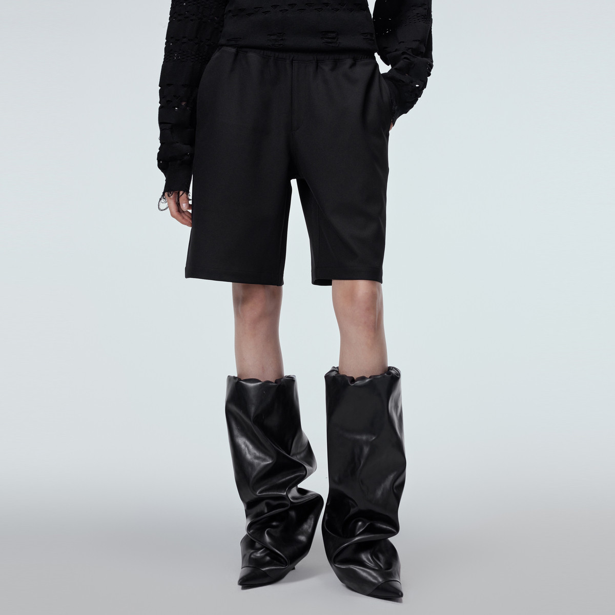 地素环保皮短裤春秋季直筒简约通勤休闲短裤女 725899