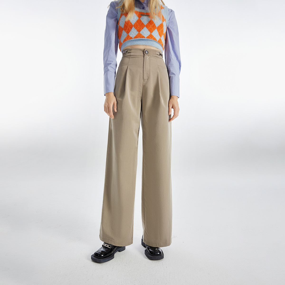 通勤OL风阔腿裤女装时尚简约咖啡色休闲裤子 366476