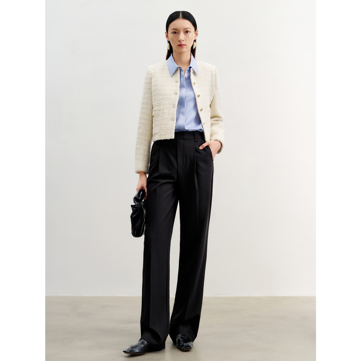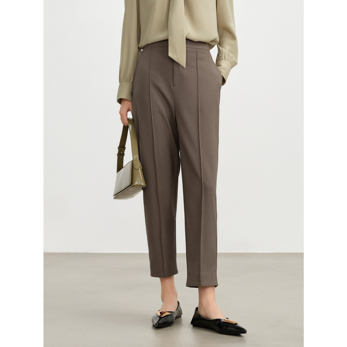 玖姿旗下安娜蔻系列简约羊毛修身直筒裤休闲裤女春季 386124