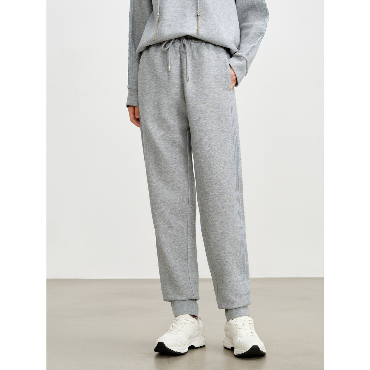 地素烫钻长裤春秋运动休闲棉质阔腿裤女 771723